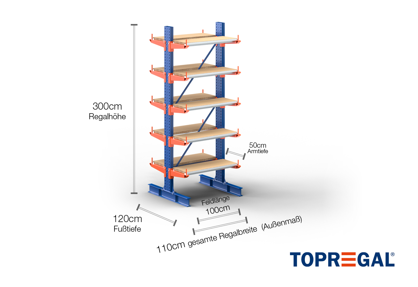 The axial dimension is the internal dimension between two shelf uprights. Depending on the cantilever type, we offer these fields in 120 cm (KR2500) and in 100 cm / 150 cm (KR3000 / KR6000).