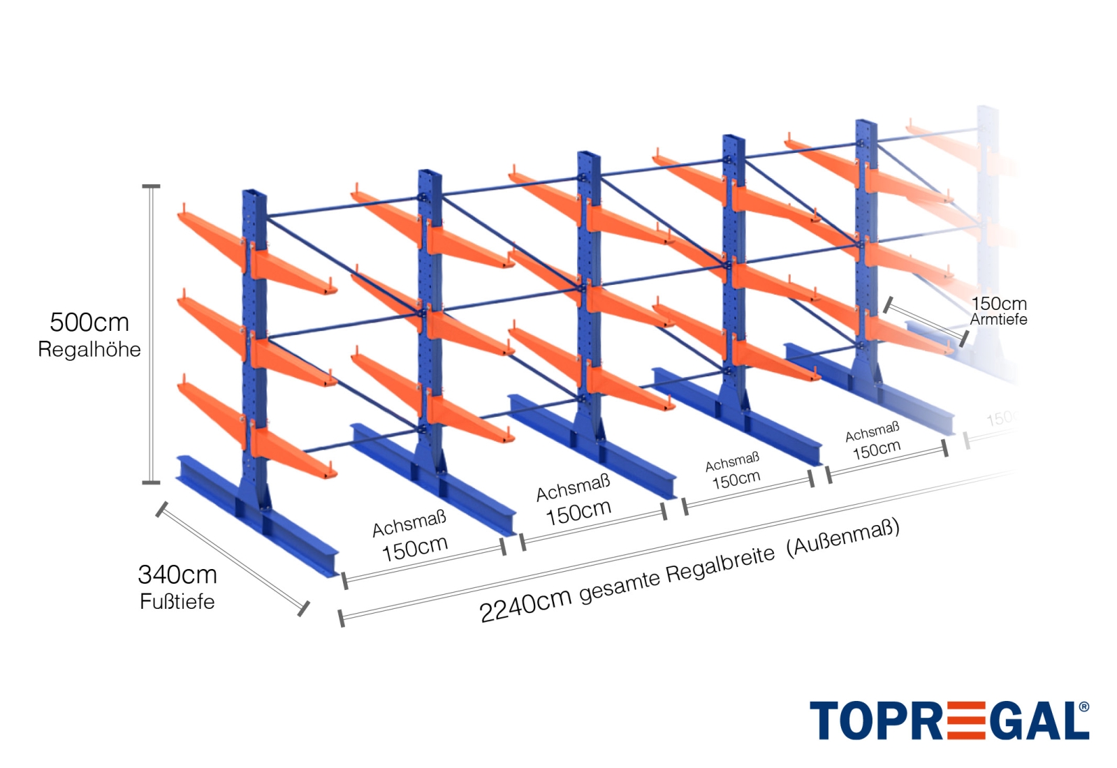 22,4 m cantilever rack KR6000 / Painted / Double-sided / 5 m high / 150 cm cantilever depth / 3 levels