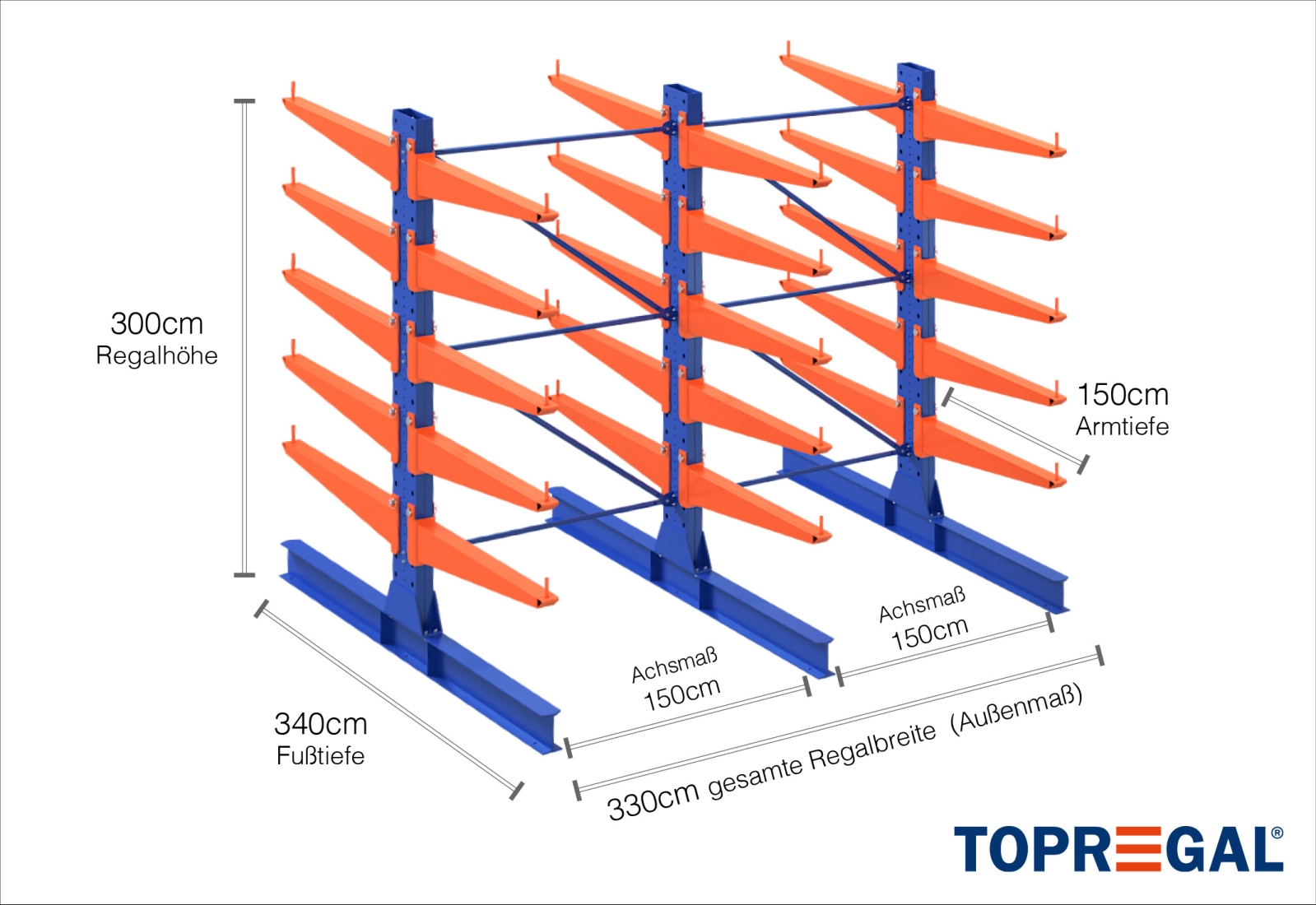 3,3 m cantilever rack KR6000 / Painted / Double-sided / 3 m high / 150 cm cantilever depth / 5 levels