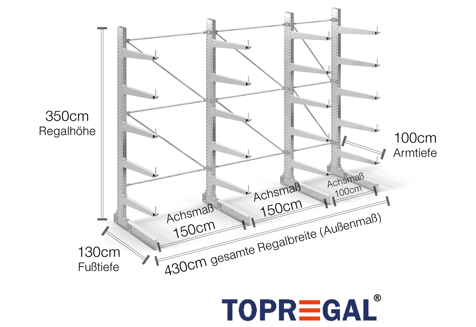 4,3 m cantilever rack KR3000 / Hot-dip galvanised / One-sided / 3,5 m high / 100 cm cantilever depth / 5 levels