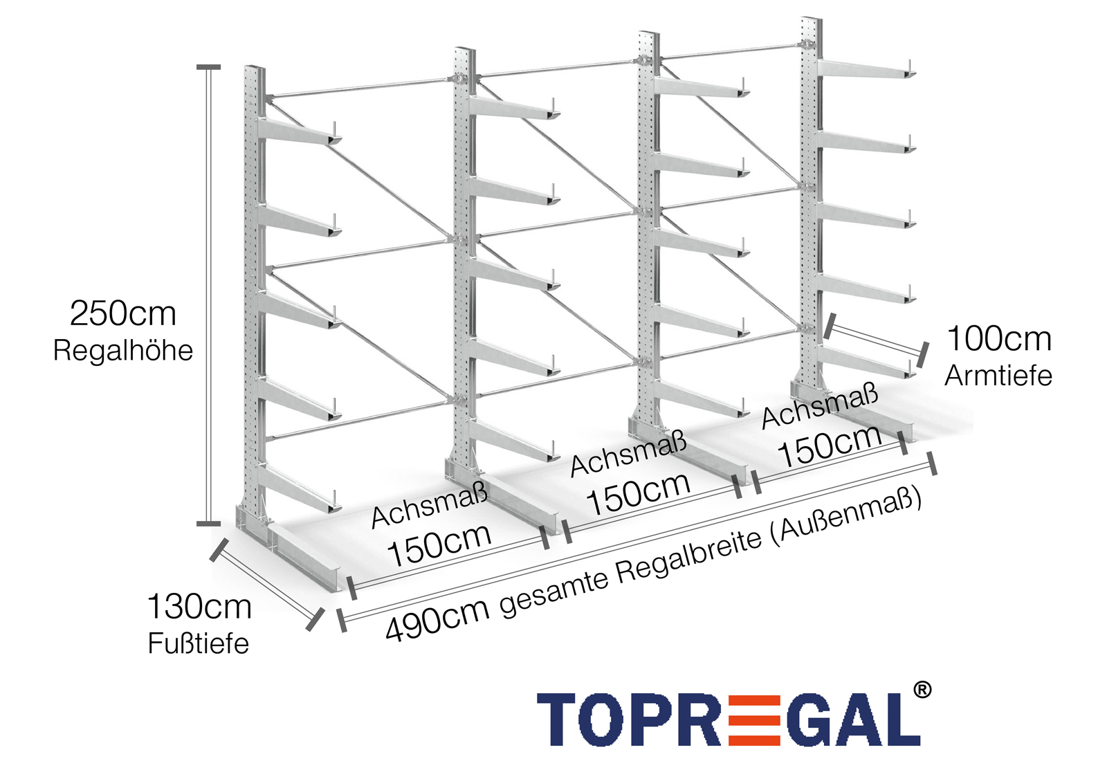 The axial dimension is the internal dimension between two shelf uprights. Depending on the cantilever type, we offer these fields in 120 cm (KR2500) and in 100 cm / 150 cm (KR3000 / KR6000).
