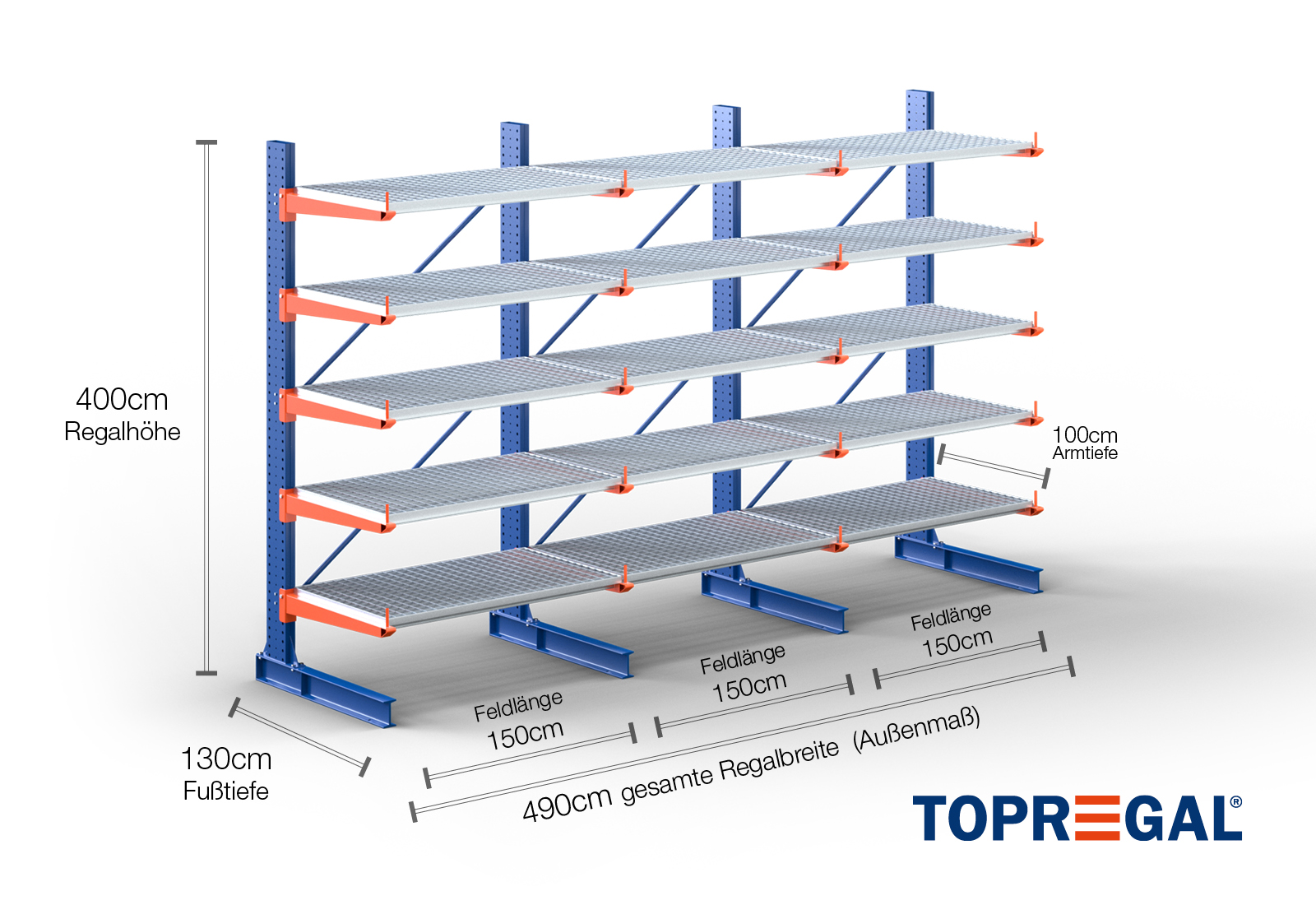 The axial dimension is the internal dimension between two shelf uprights. Depending on the cantilever type, we offer these fields in 120 cm (KR2500) and in 100 cm / 150 cm (KR3000 / KR6000).