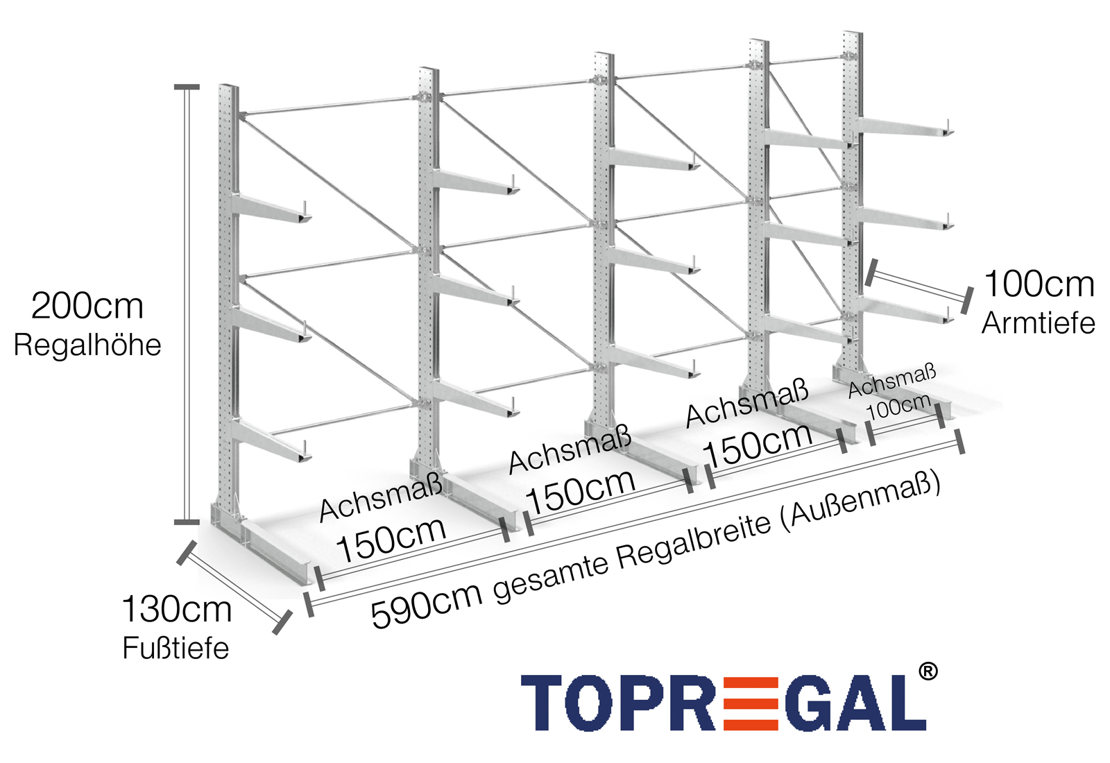 The axial dimension is the internal dimension between two shelf uprights. Depending on the cantilever type, we offer these fields in 120 cm (KR2500) and in 100 cm / 150 cm (KR3000 / KR6000).