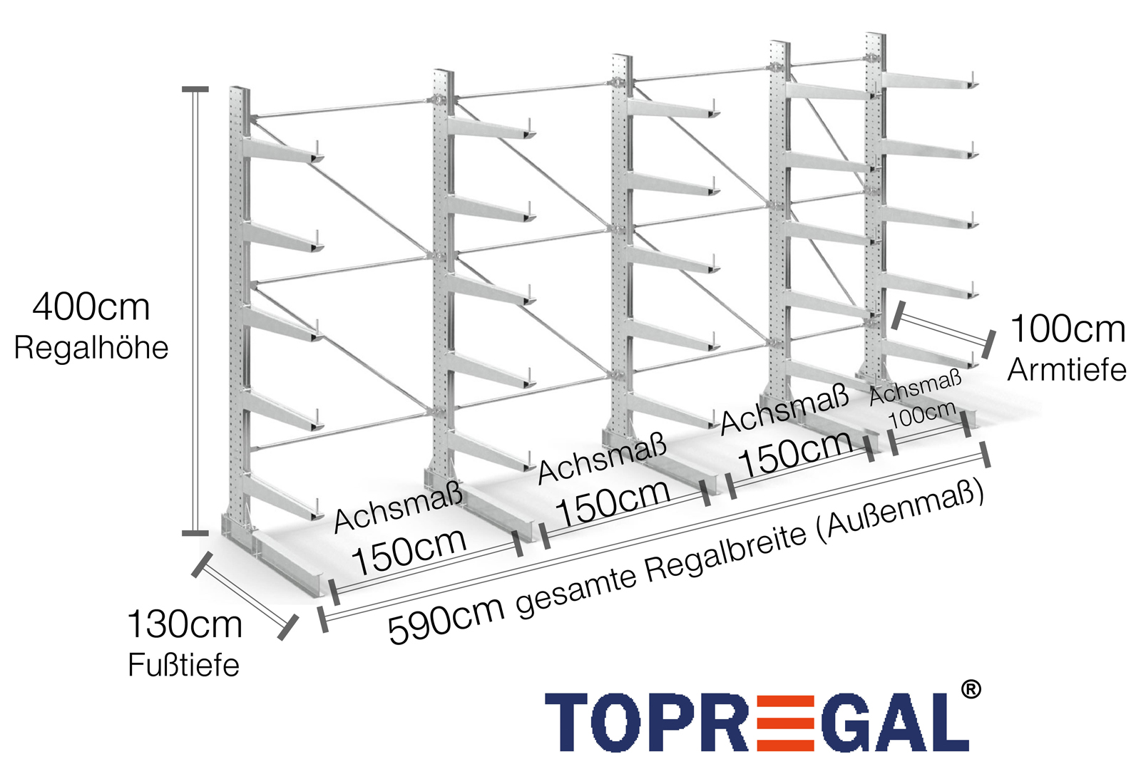 The axial dimension is the internal dimension between two shelf uprights. Depending on the cantilever type, we offer these fields in 120 cm (KR2500) and in 100 cm / 150 cm (KR3000 / KR6000).