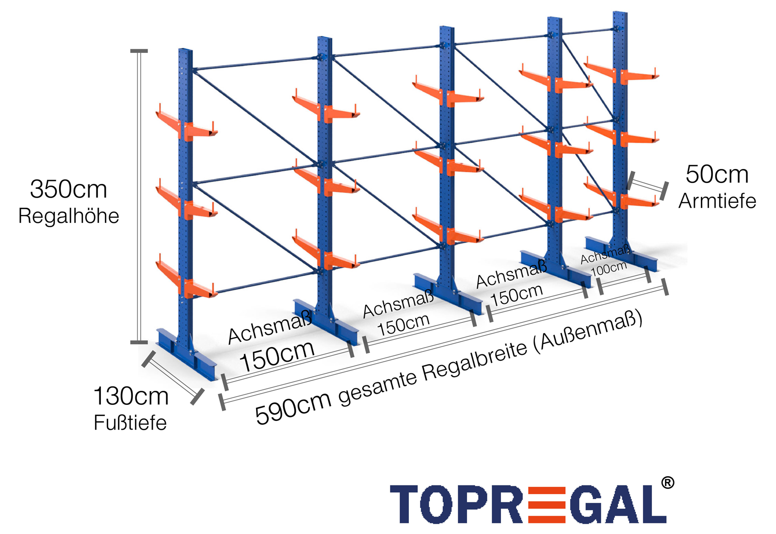 The axial dimension is the internal dimension between two shelf uprights. Depending on the cantilever type, we offer these fields in 120 cm (KR2500) and in 100 cm / 150 cm (KR3000 / KR6000).