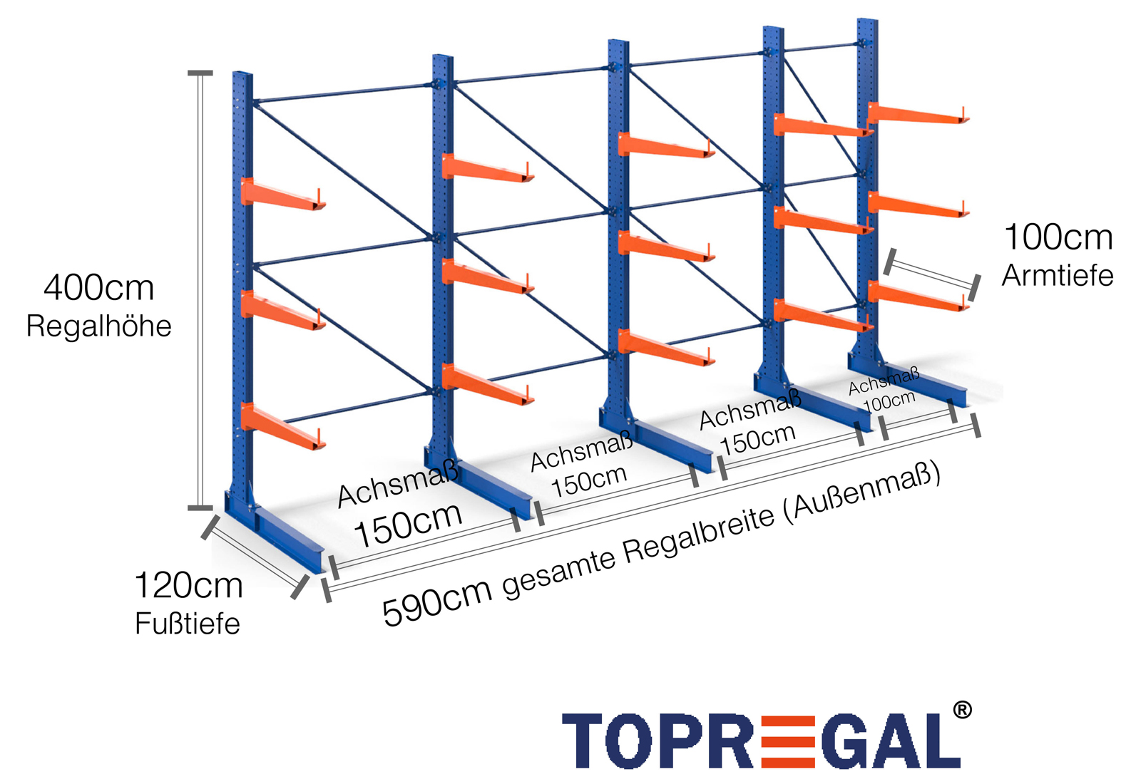 The axial dimension is the internal dimension between two shelf uprights. Depending on the cantilever type, we offer these fields in 120 cm (KR2500) and in 100 cm / 150 cm (KR3000 / KR6000).