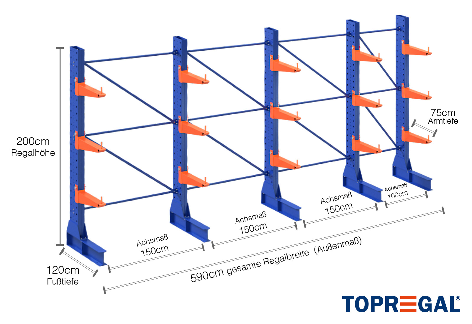 The axial dimension is the internal dimension between two shelf uprights. Depending on the cantilever type, we offer these fields in 120 cm (KR2500) and in 100 cm / 150 cm (KR3000 / KR6000).