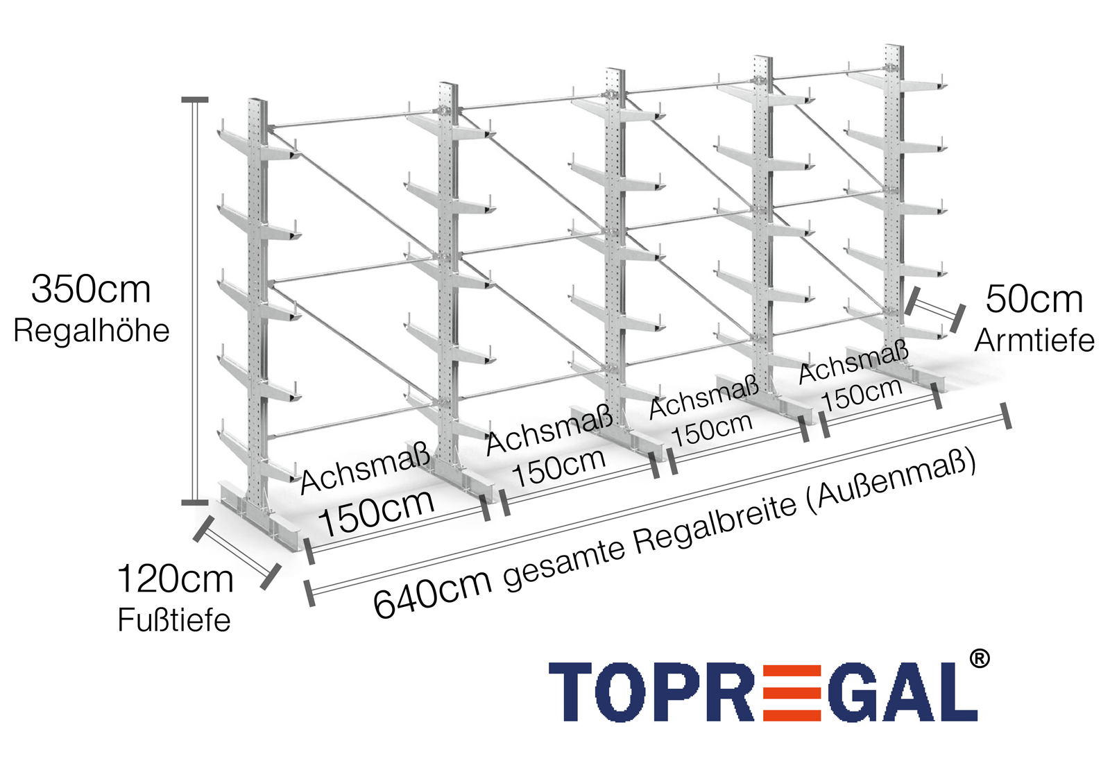 The axial dimension is the internal dimension between two shelf uprights. Depending on the cantilever type, we offer these fields in 120 cm (KR2500) and in 100 cm / 150 cm (KR3000 / KR6000).