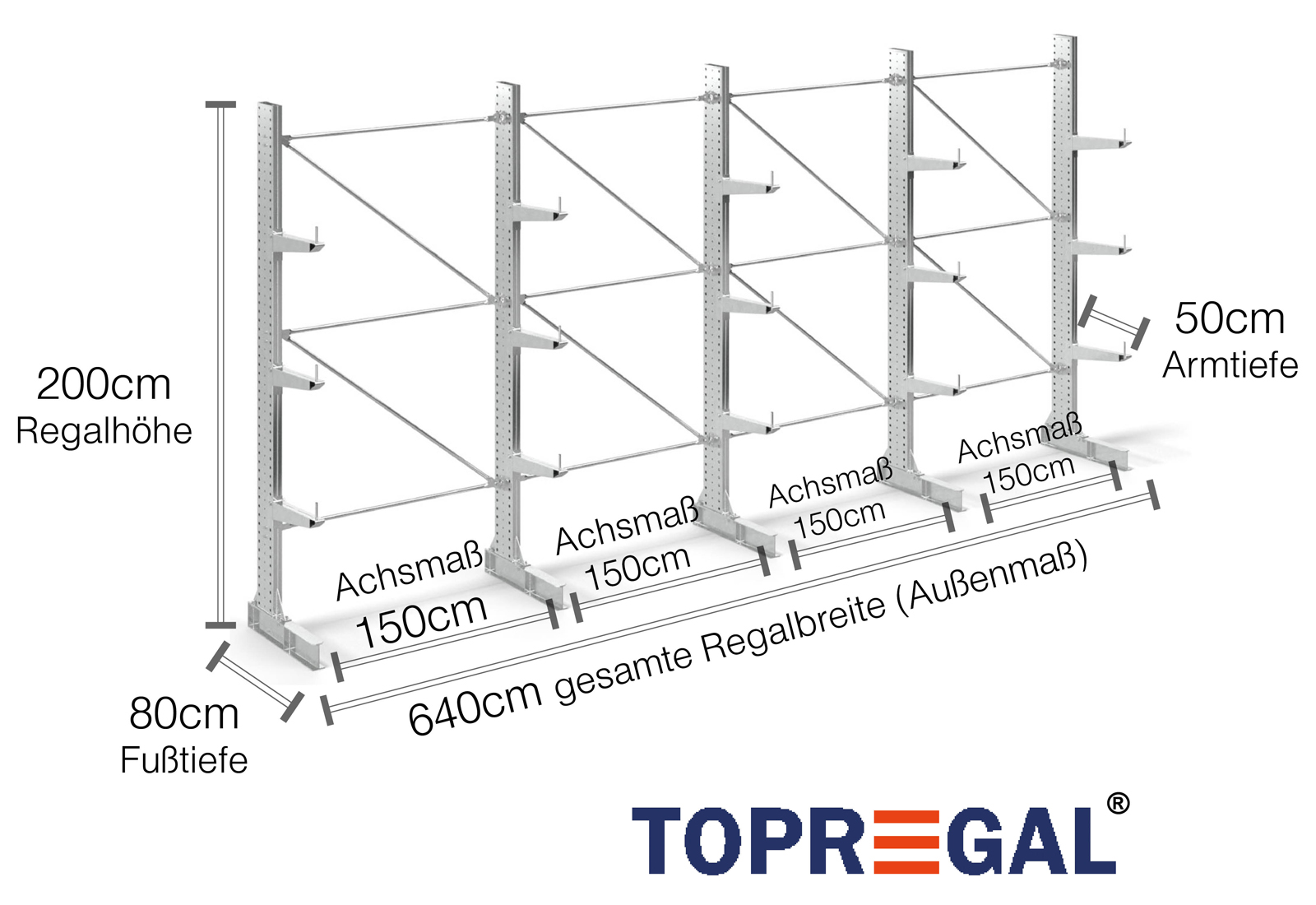 The axial dimension is the internal dimension between two shelf uprights. Depending on the cantilever type, we offer these fields in 120 cm (KR2500) and in 100 cm / 150 cm (KR3000 / KR6000).