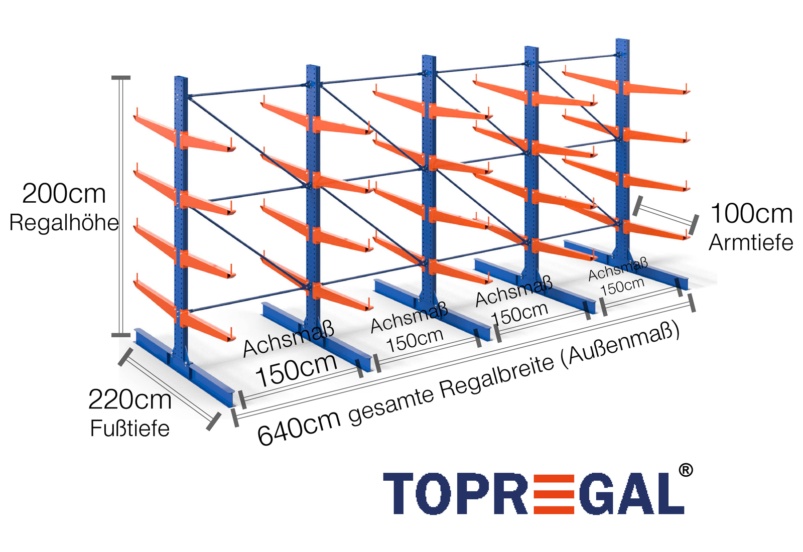 The axial dimension is the internal dimension between two shelf uprights. Depending on the cantilever type, we offer these fields in 120 cm (KR2500) and in 100 cm / 150 cm (KR3000 / KR6000).