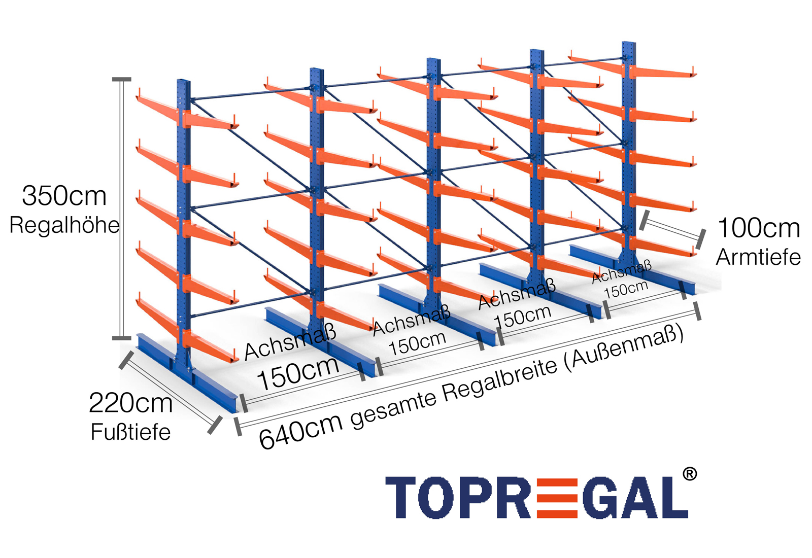 The axial dimension is the internal dimension between two shelf uprights. Depending on the cantilever type, we offer these fields in 120 cm (KR2500) and in 100 cm / 150 cm (KR3000 / KR6000).
