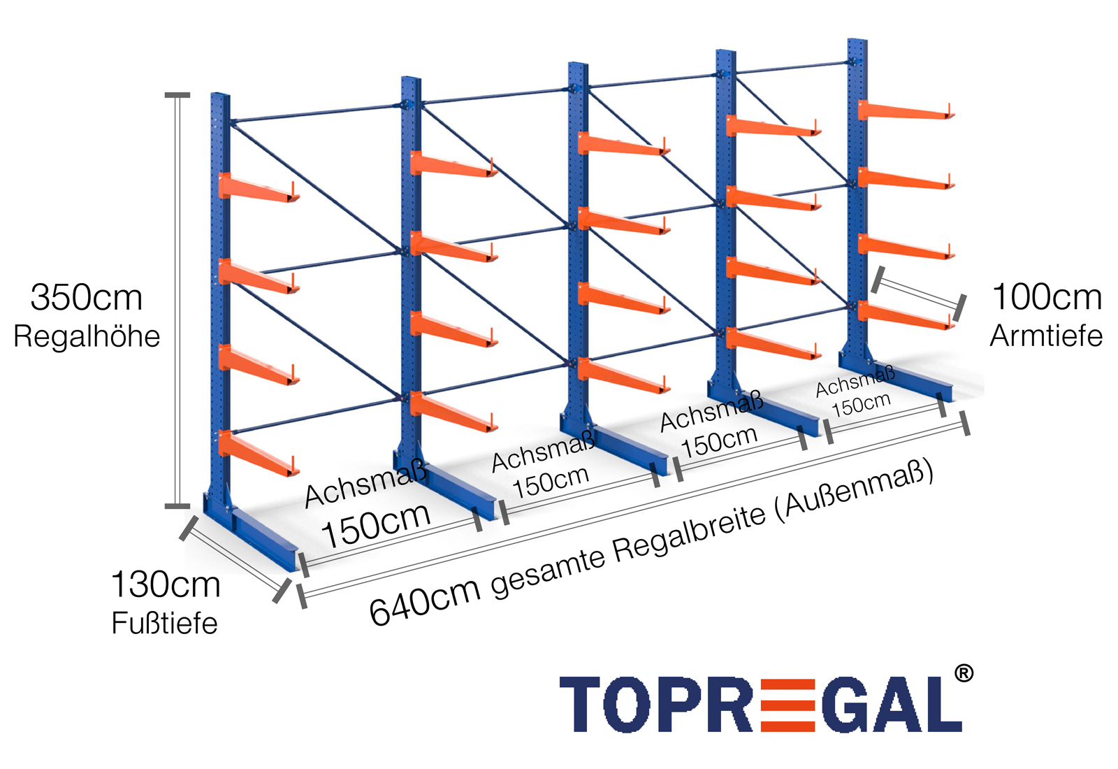 The axial dimension is the internal dimension between two shelf uprights. Depending on the cantilever type, we offer these fields in 120 cm (KR2500) and in 100 cm / 150 cm (KR3000 / KR6000).