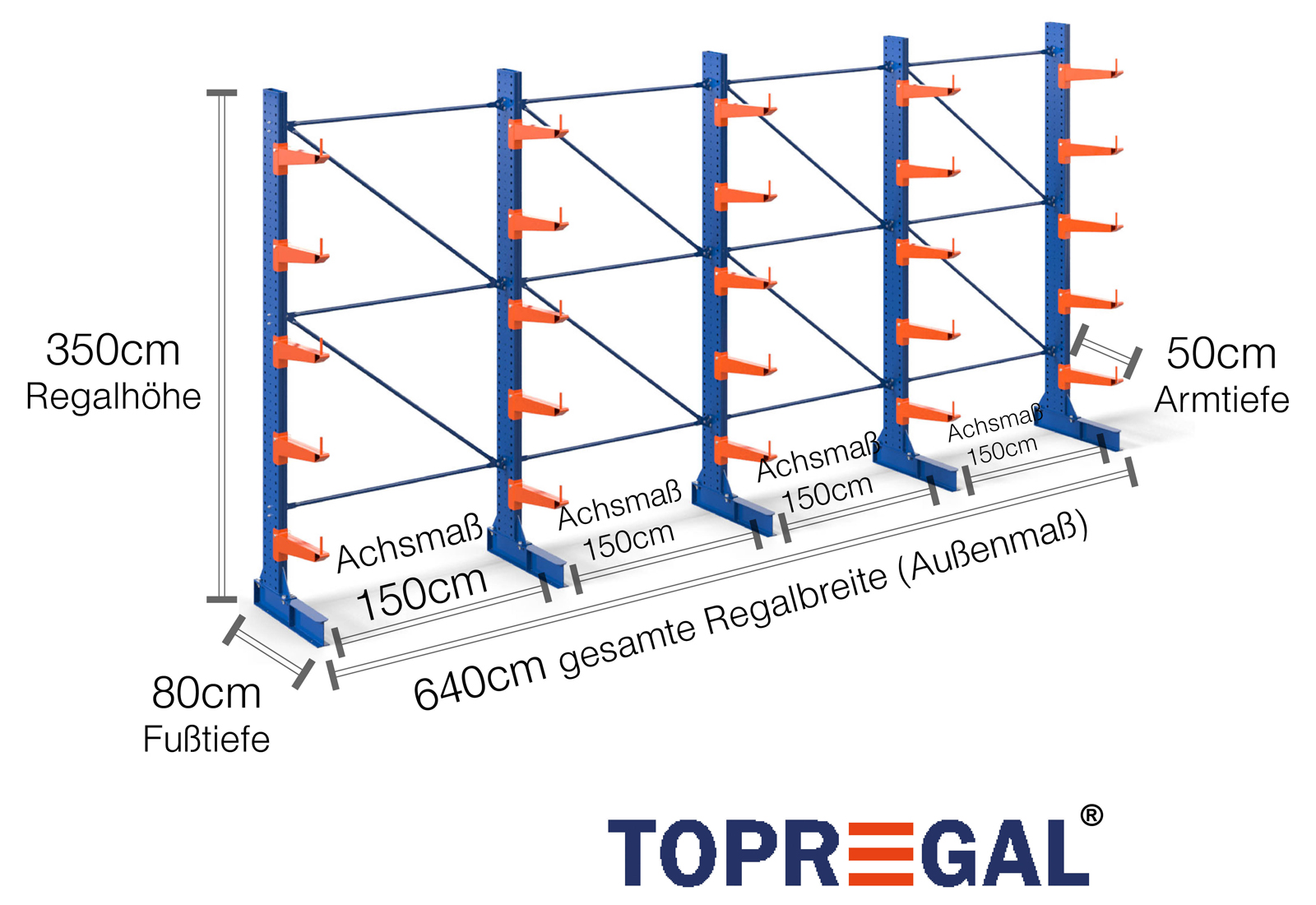 The axial dimension is the internal dimension between two shelf uprights. Depending on the cantilever type, we offer these fields in 120 cm (KR2500) and in 100 cm / 150 cm (KR3000 / KR6000).