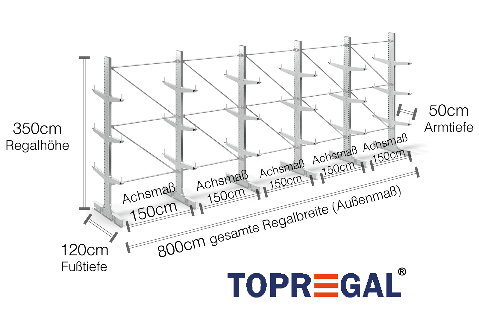 The axial dimension is the internal dimension between two shelf uprights. Depending on the cantilever type, we offer these fields in 120 cm (KR2500) and in 100 cm / 150 cm (KR3000 / KR6000).