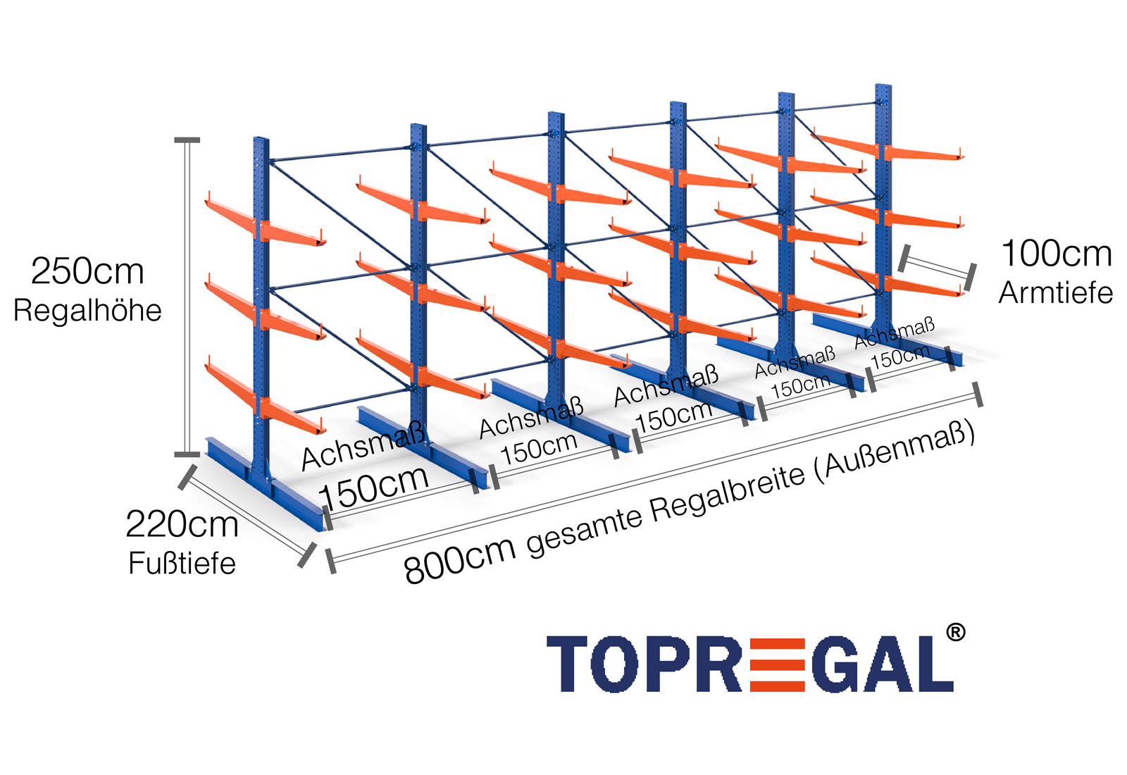 The axial dimension is the internal dimension between two shelf uprights. Depending on the cantilever type, we offer these fields in 120 cm (KR2500) and in 100 cm / 150 cm (KR3000 / KR6000).