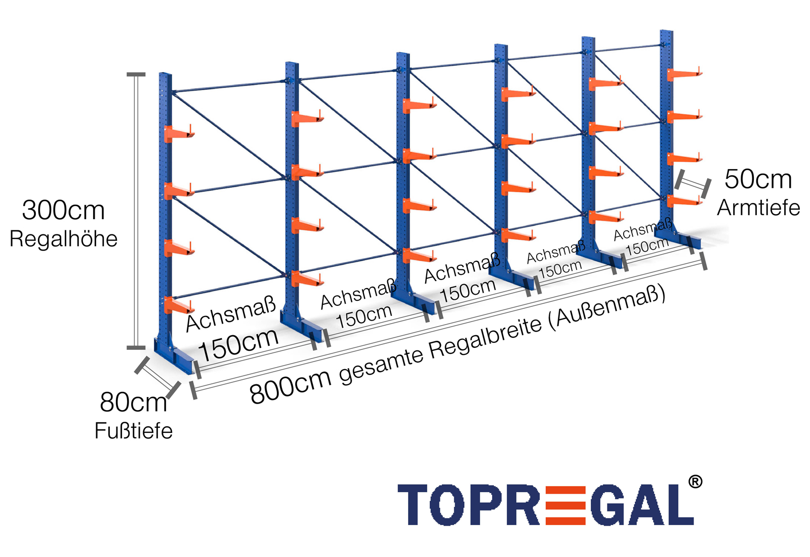 The axial dimension is the internal dimension between two shelf uprights. Depending on the cantilever type, we offer these fields in 120 cm (KR2500) and in 100 cm / 150 cm (KR3000 / KR6000).