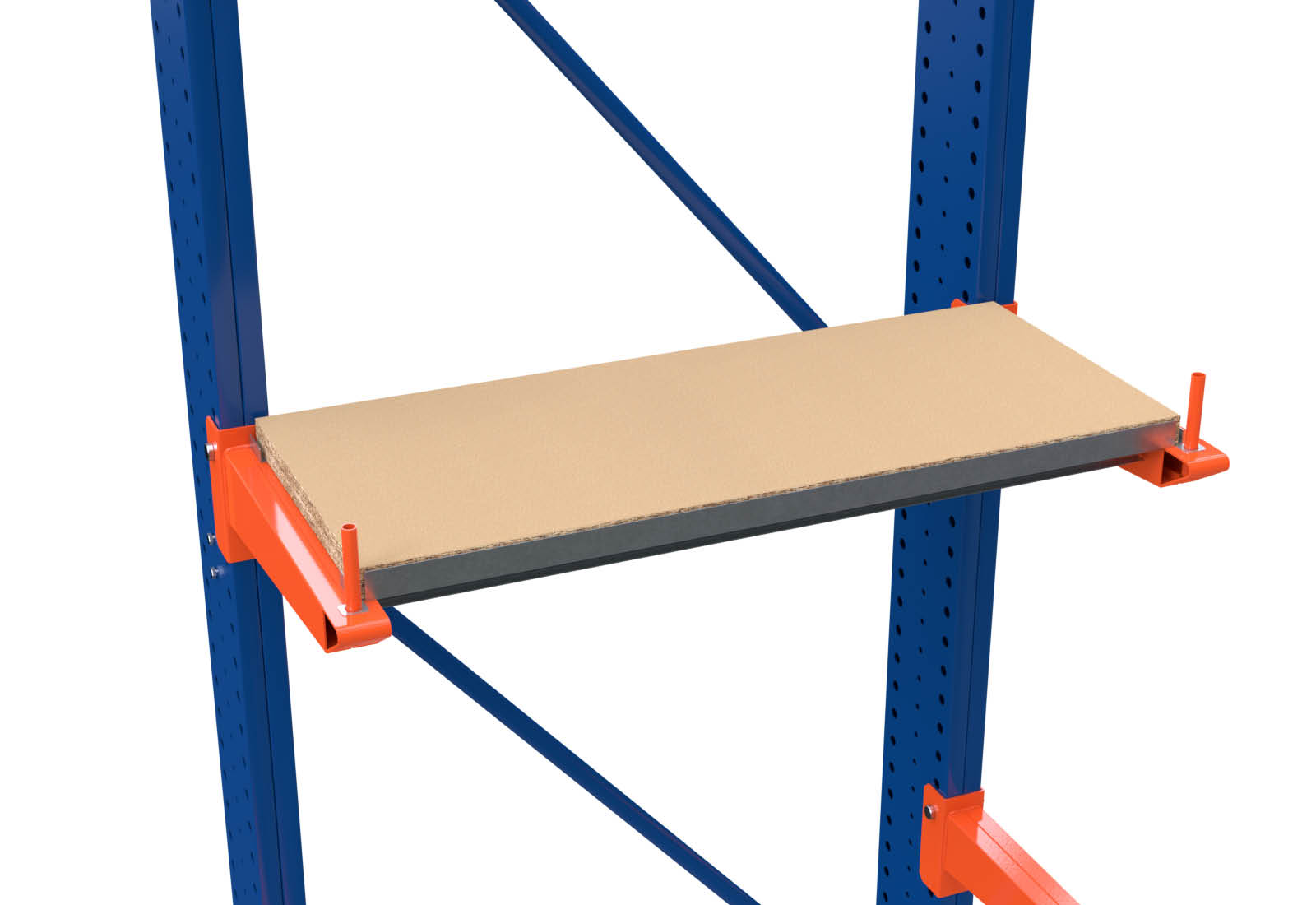 With this wooden board (material thickness 38 mm), you can use your existing cantilever racks even more flexibly and easily create additional storage space. The wooden shelf is fixed at the front and at the back and secured against possible slipping using two fixing brackets which are included in the delivery volume. With the fixing brackets, the load-bearing capacity of the shelf is up to 400 kg.