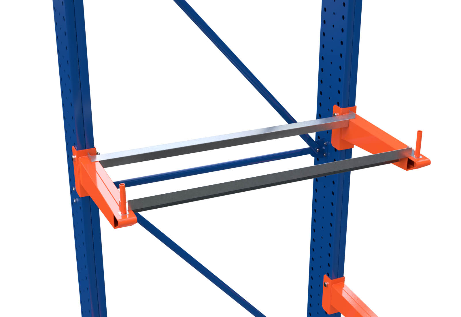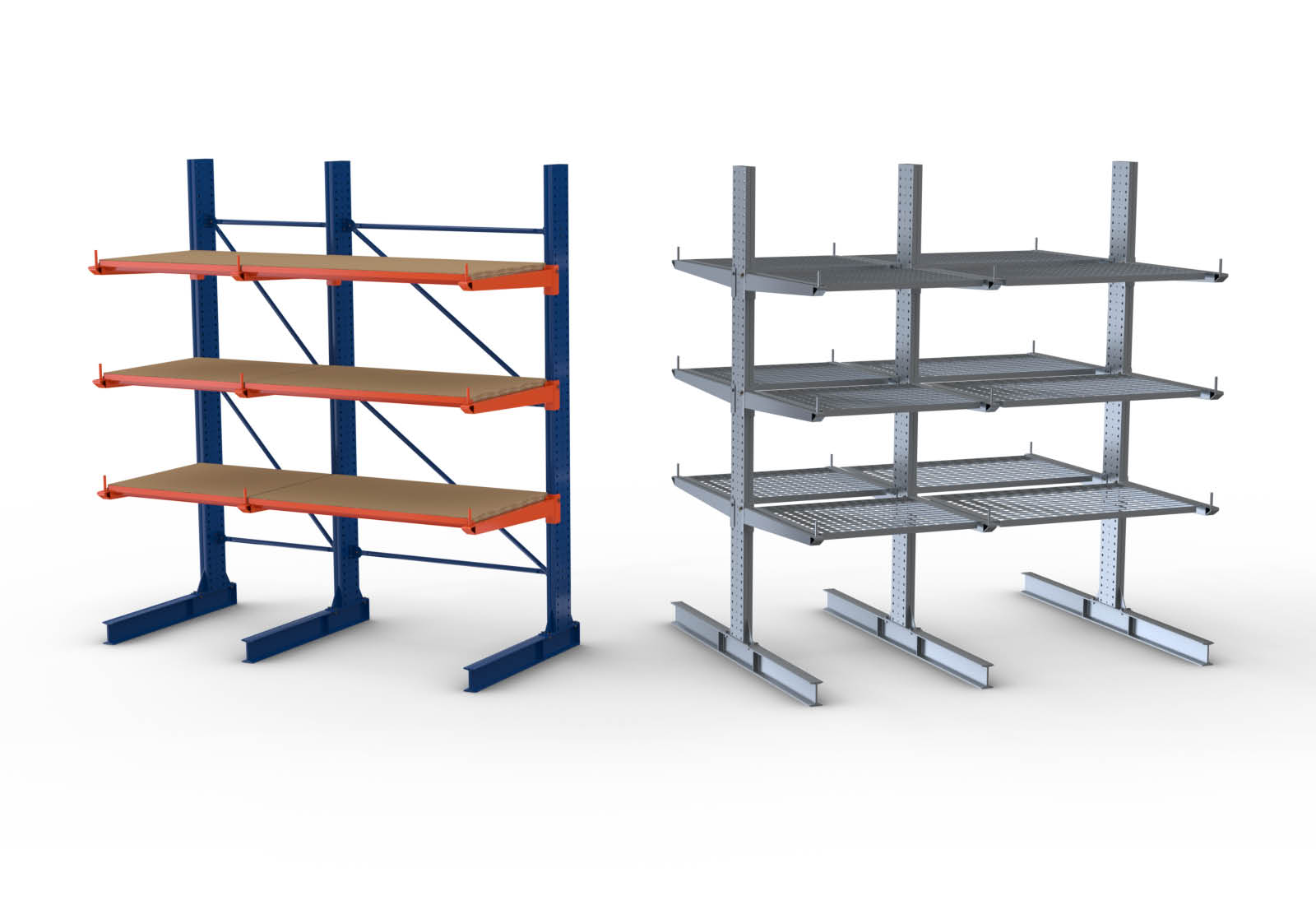 Using the shelves, the rack can be loaded with pallets, parcels or transport boxes, for example. In addition, the shelves prevent goods from falling and long goods from sagging between the cantilevers.