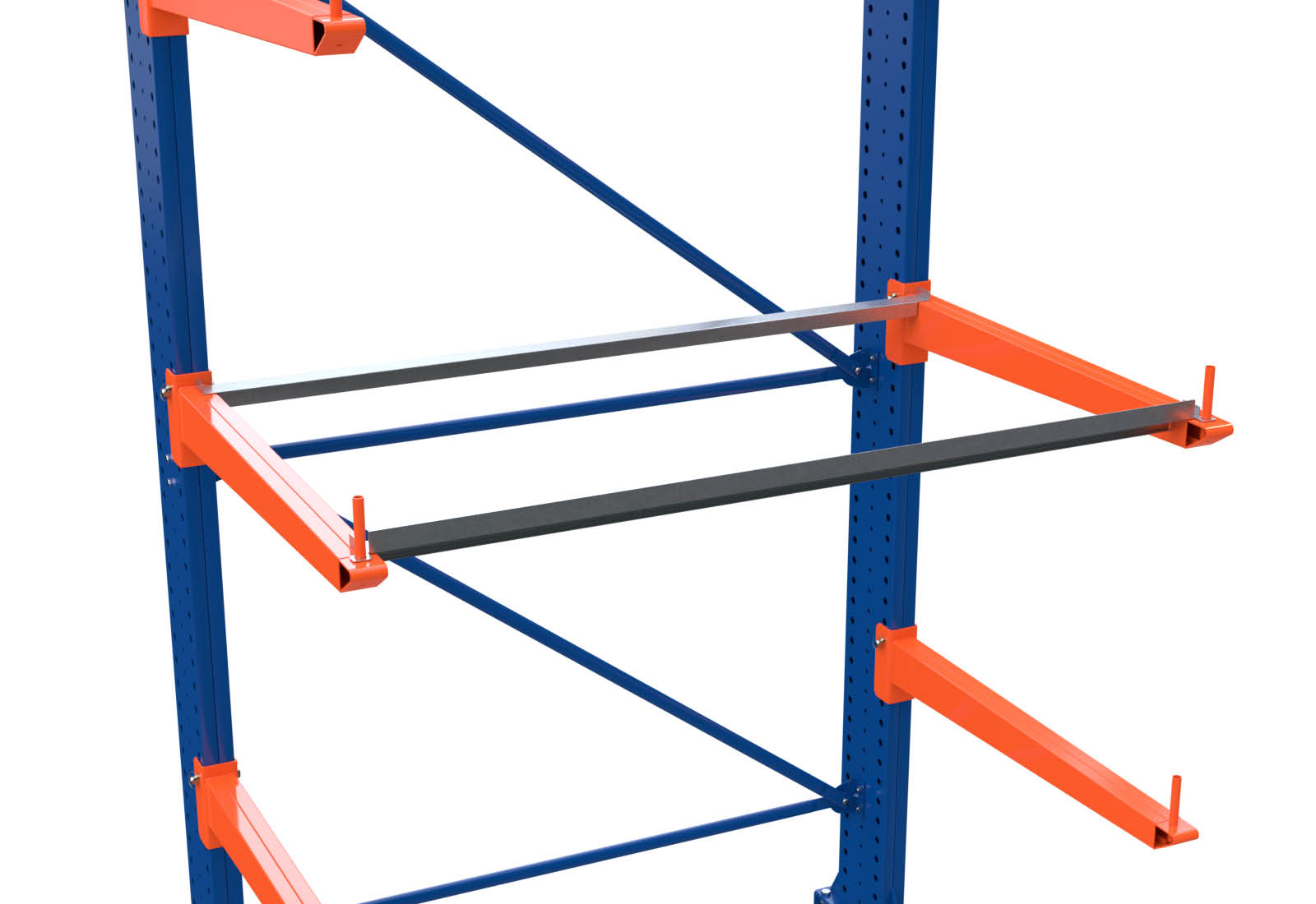 - Insert fixed levels into the cantilever rack with the aid of fastening bars