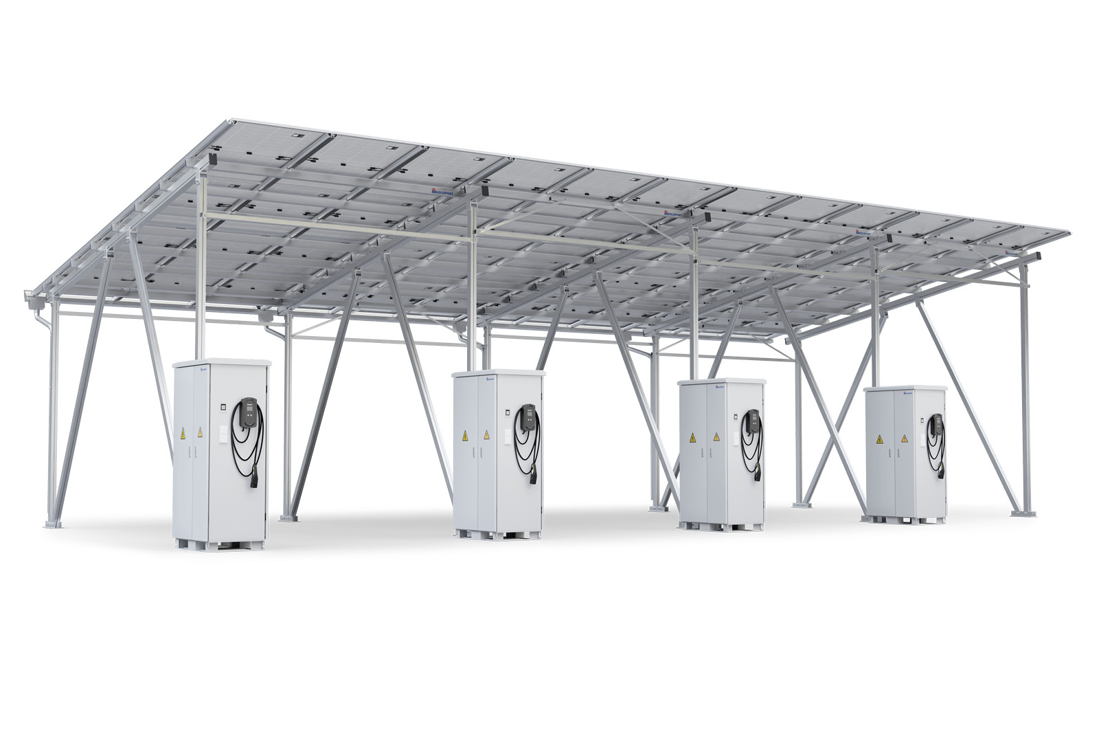 We offer add-on variants of all carports that can be attached to an existing SoloPort carport to create a double carport or a carport for three vehicles. However, a separate inverter and control cabinet must be connected for the operation of each solar carport.