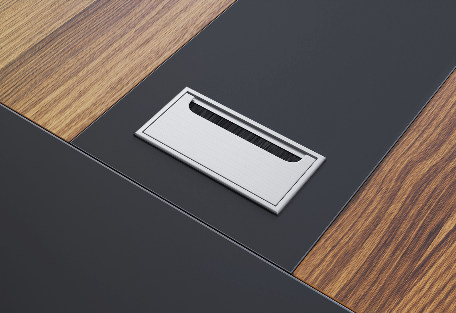 Conference table ANJA360 grey/nut brown with cable duct for 12 - 14 people