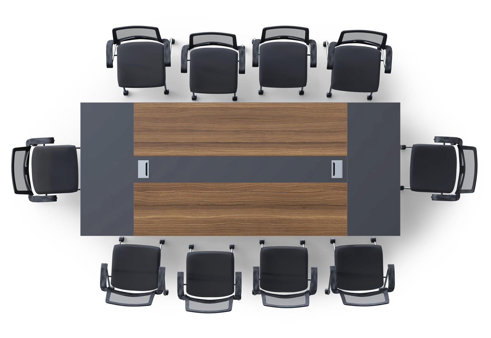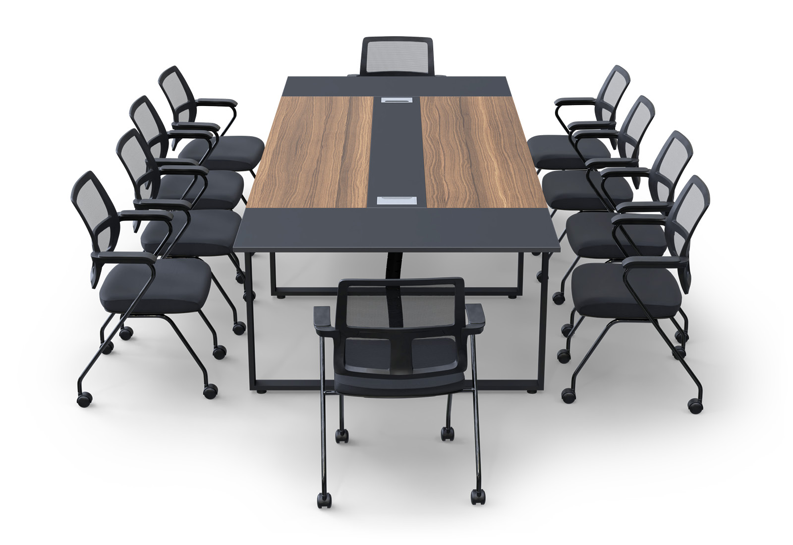 Conference table set ANJA280 in grey-walnut brown + 10 EMMA chairs
