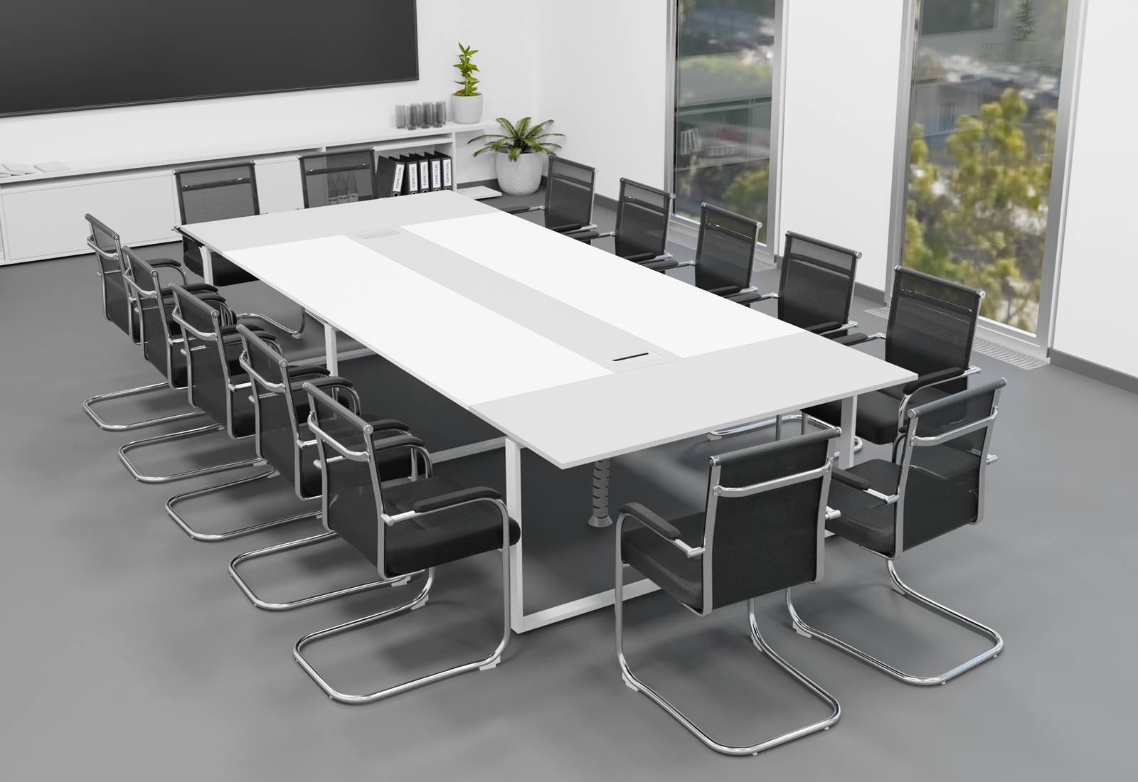Conference table set ANJA360 in light grey/white + 14 MARINA chairs