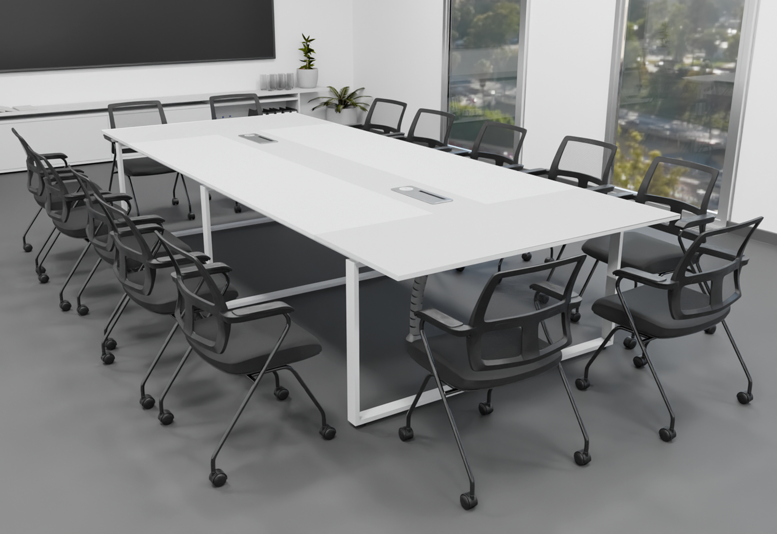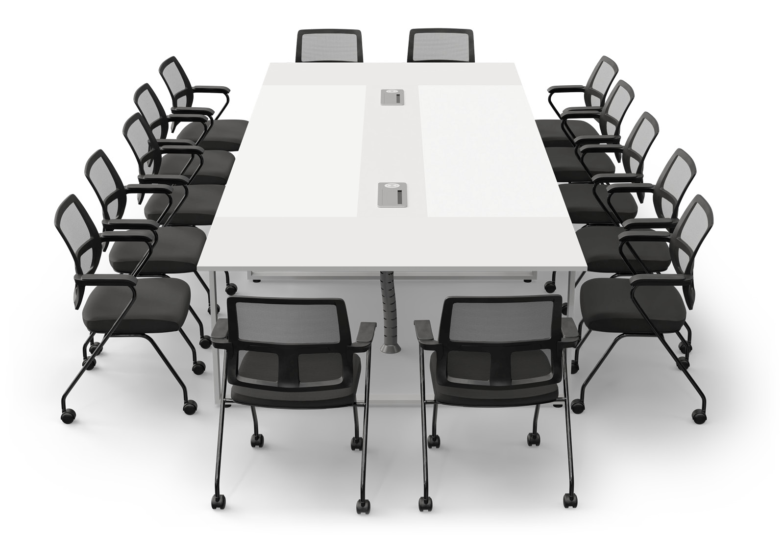 Conference table set ANJA360i in Lightgrey-white with induction charging station + 14 EMMA chairs