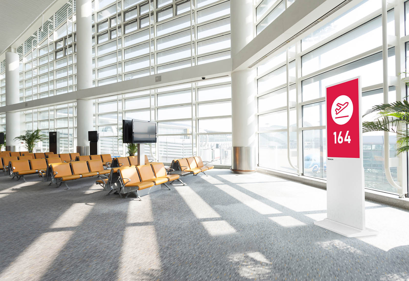 The digital advertising display is kept in a simple White and thus fits into any interior.