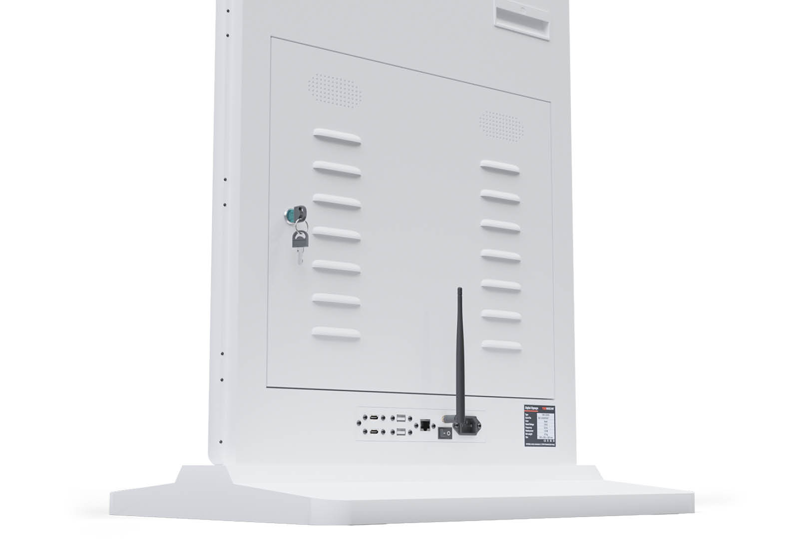 - 1 x Digital display totem DKS-LED43, 43 in display, Android 11, White, 610 mm x 450 mm x 1.810 mm, TecMaschin