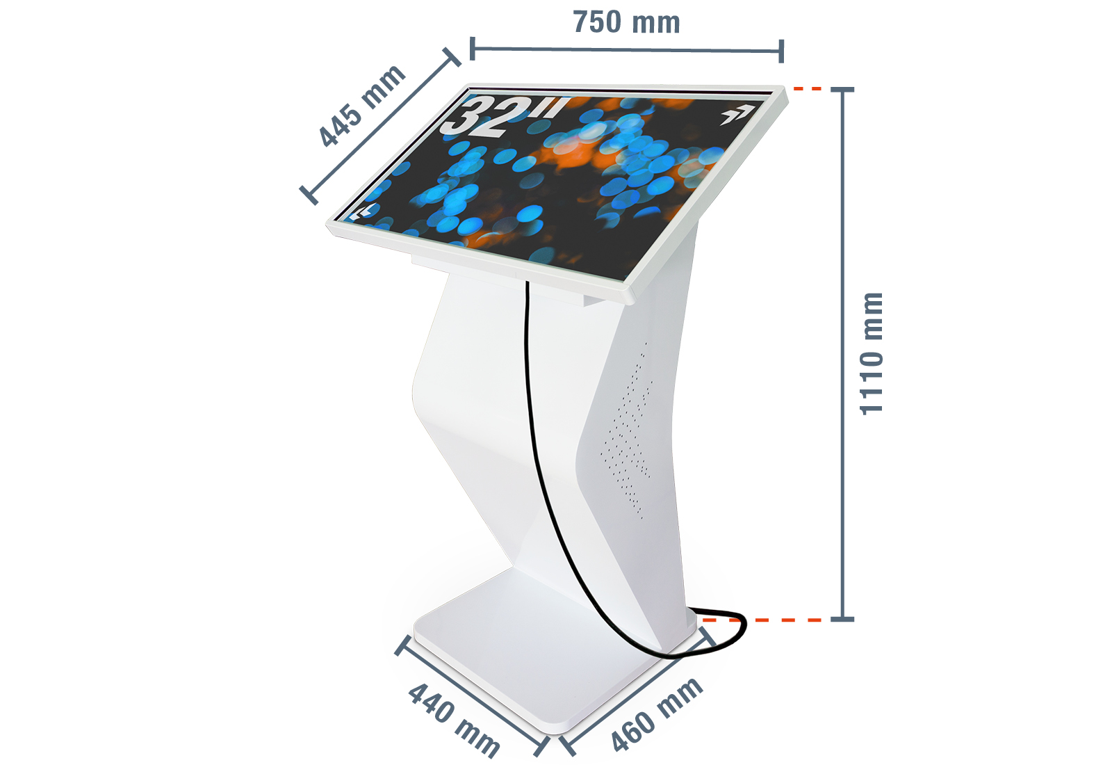 The digital touch terminal DITT-LED32 is not only particularly flexible and easy to operate, but also to set up. The low weight of just 25 kg and the compact dimensions of 750 mm x 455 mm x 1.110 mm make it easy to transport and install on site. This makes the interactive display ideal for temporary set-up at trade fairs or in temporary sales rooms. The touch display is mounted on the elegant stand with 4 Allen screws. After plugging it in, you can immediately start uploading content. Due to the low weight, we recommend anchoring the stand to the floor.