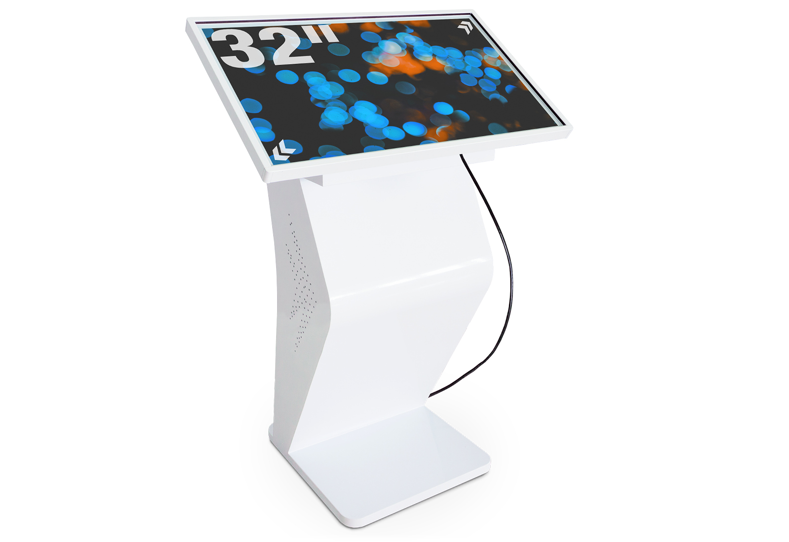 The advantages of such a device are obvious. Content can be uploaded much more quickly and easily in individual shops or branches. There is no longer any need to print out posters or other print media. Information can be distributed in a targeted manner, presented in an appealing way and designed interactively. During product presentations, for example, 3D models can be rotated on the intuitive touch display, analysed and viewed more closely thanks to zoom. With individual points that can be clicked on, product information can be communicated in a playful way. This makes the innovative digital terminal with its touch function the ideal companion at trade fairs, in your own showroom or on the shop floor. The 32 in large display ensures a captivated look. The modern design in white blends in perfectly with almost any interior.