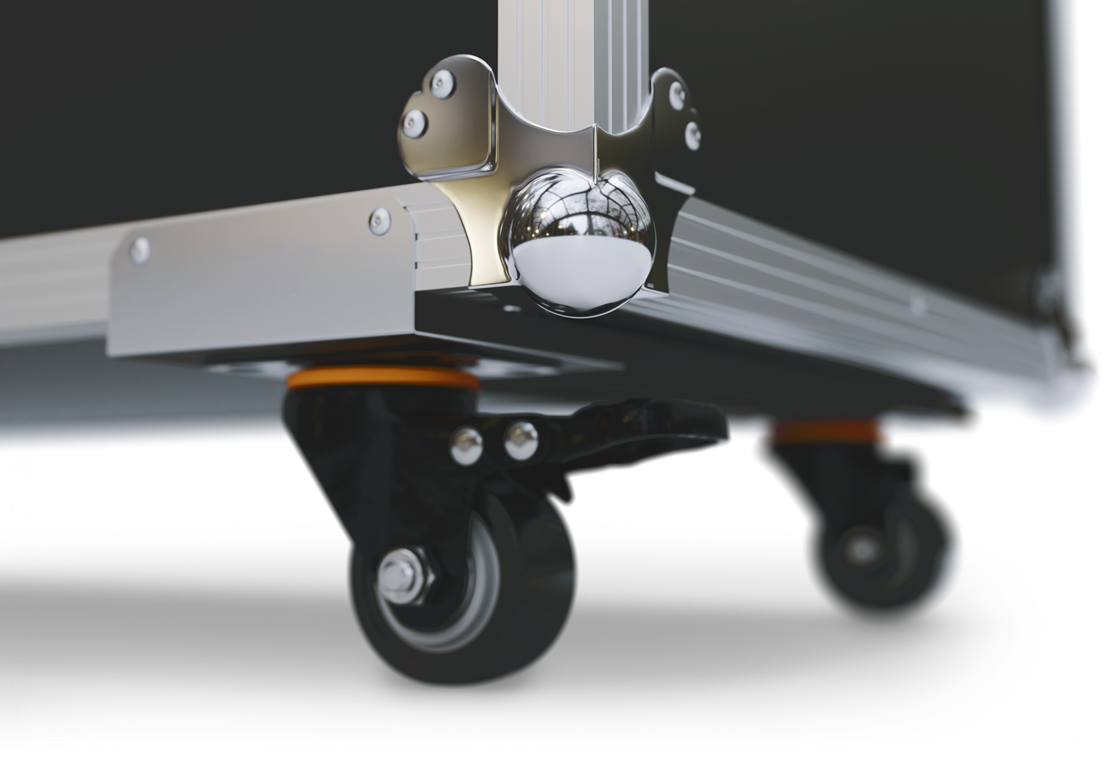 The box is robustly constructed, sturdily reinforced and designed for repeated use. Thanks to the foam padding and sturdy construction, the device and accessories are reliably protected. For mobile use, the box has four castors for easy movement and fastenings that can be operated quickly and without tools. This makes it ideal for regular transport or secure storage of the DITT-LED32.