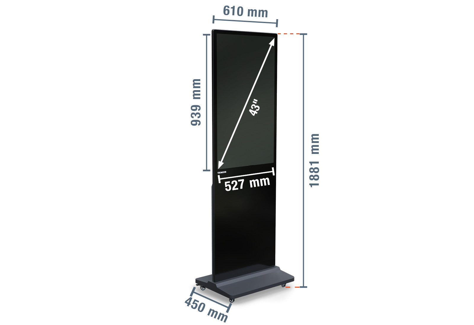 Mobile digital display totem DKS-LED43, 43 in Display, Android 11, Black, 610 mm x 450 mm x 1.881 mm, TecMaschin