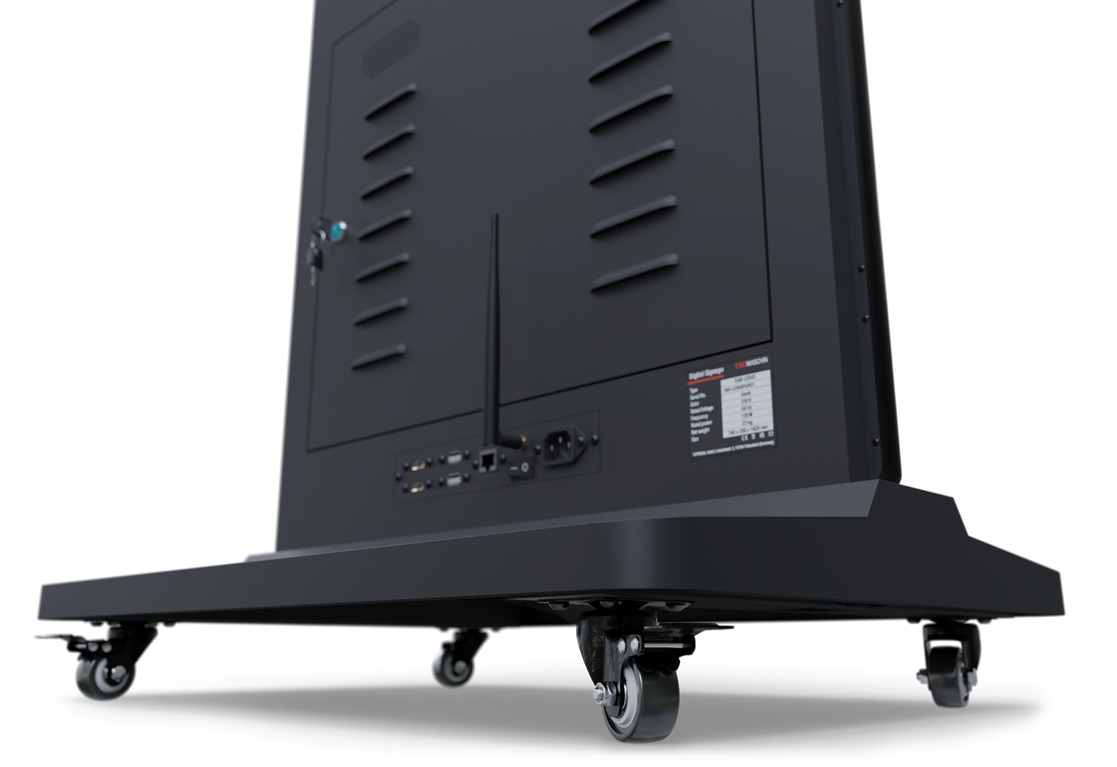 • 1 x Mobile digital display totem DKS-LED43, 43 in Display, Android 11, Black, 610 mm x 450 mm x 1.881 mm, TecMaschin incl. power cable and remote control