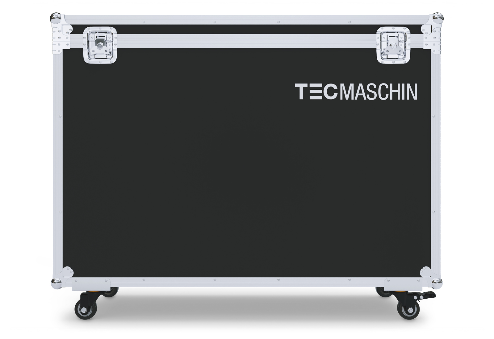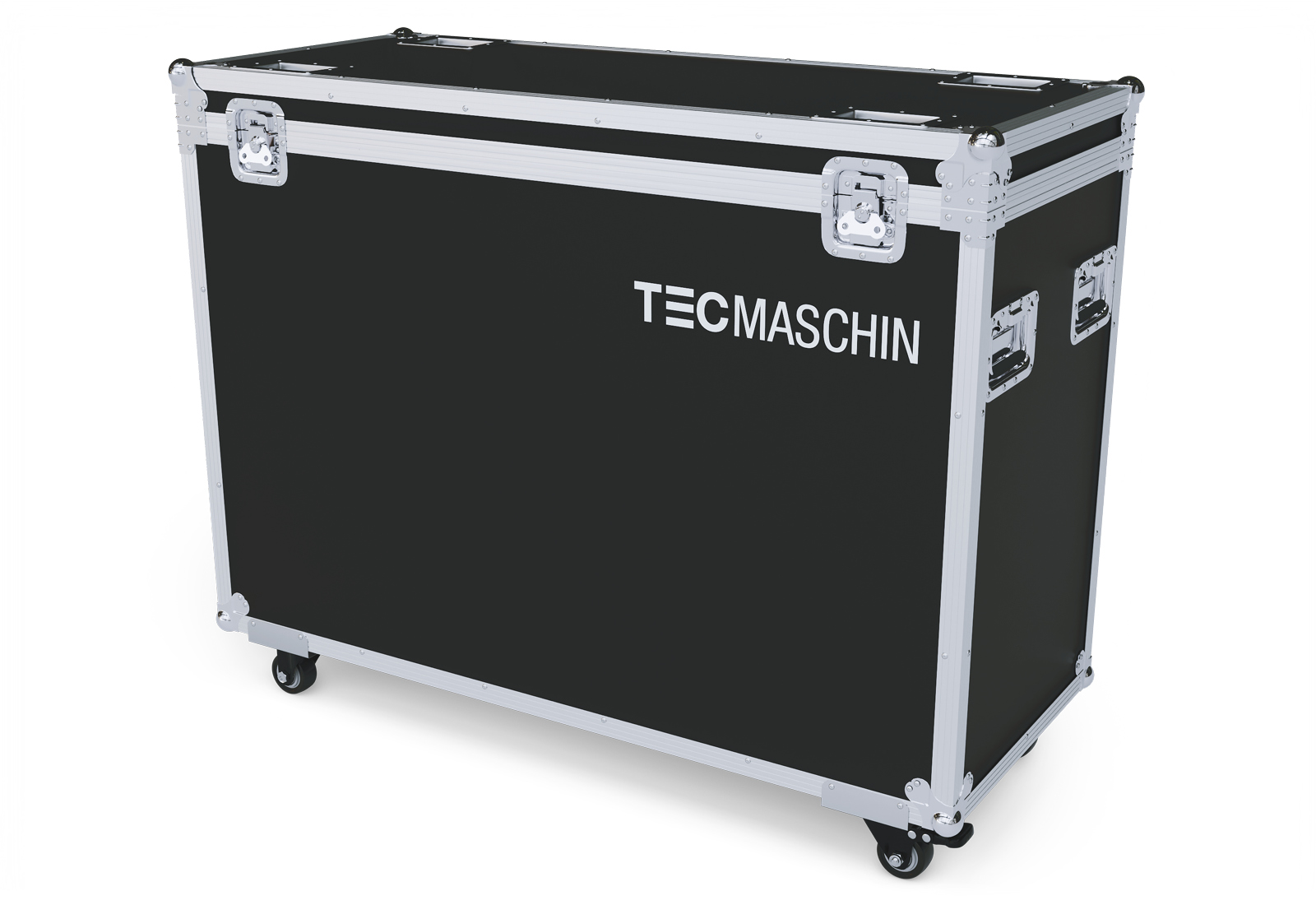 The external dimensions of the box are 1.230 mm in width, 510 mm in depth and 980 mm in height. The housing is made of 9 mm thick, black-coated wood, framed in aluminium profiles with reinforced steel corners. The transport box weighs 35 kg and is designed for a load of up to 120 kg.
