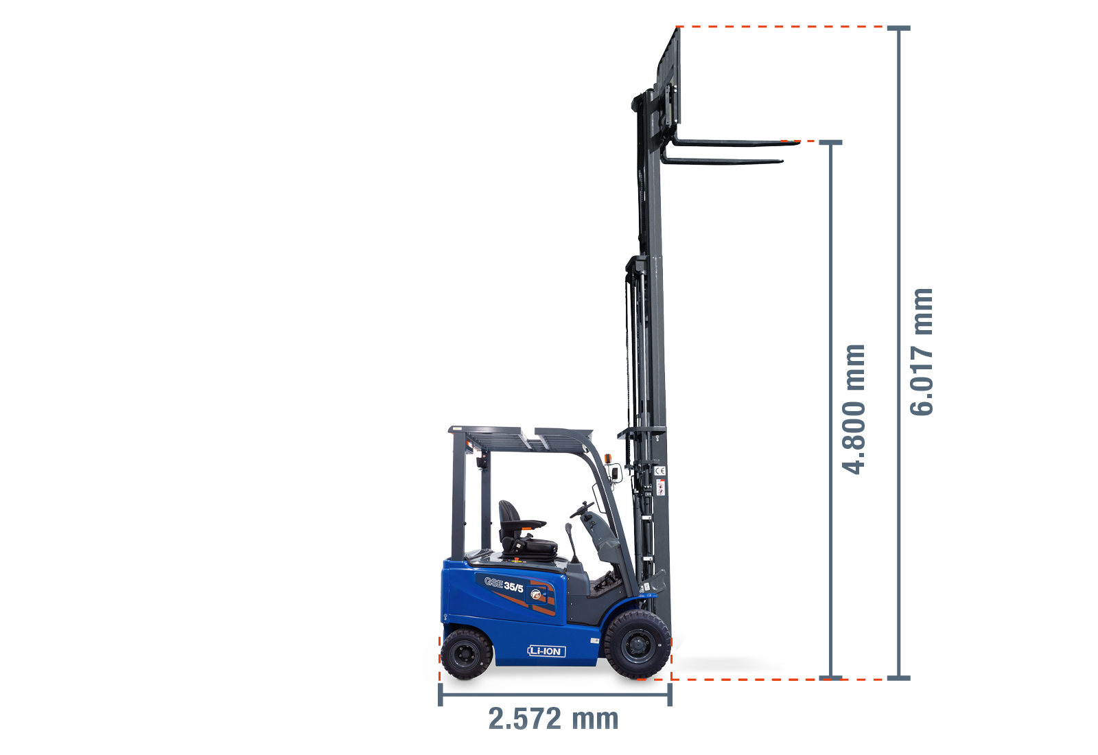 LI-ION electric forklift GSE35/5 incl. 380 V / rapid charger, load capacity 3.500 kg, SolidHub