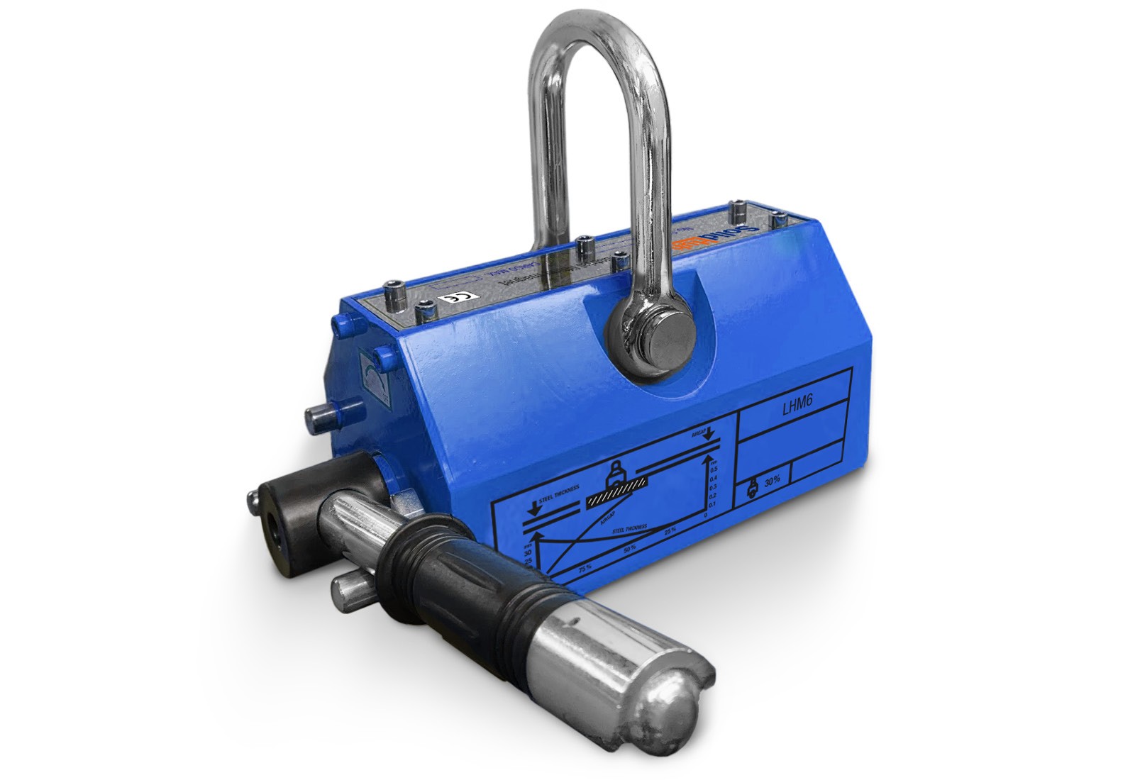Now SolidHub has the solution: the LHM6 industrial lifting magnet lifts loads of up to 600 kg with ease. Just place the device on the smooth surface of a sheet and flip the lever. The sheet can then be lifted using a crane or other lifting device. This is done by simply hooking a sling or hook into the shackle. The compact lifting magnet (210 mm x 350 mm x 220 mm) weighs just 20 kg, which helps with transport and handling.
