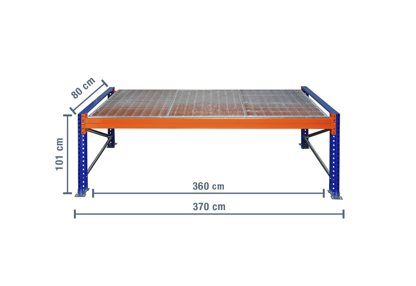 - 1 x pallet-rack mesh shelf, 360 cm x 80 cm (4 modules per level)
