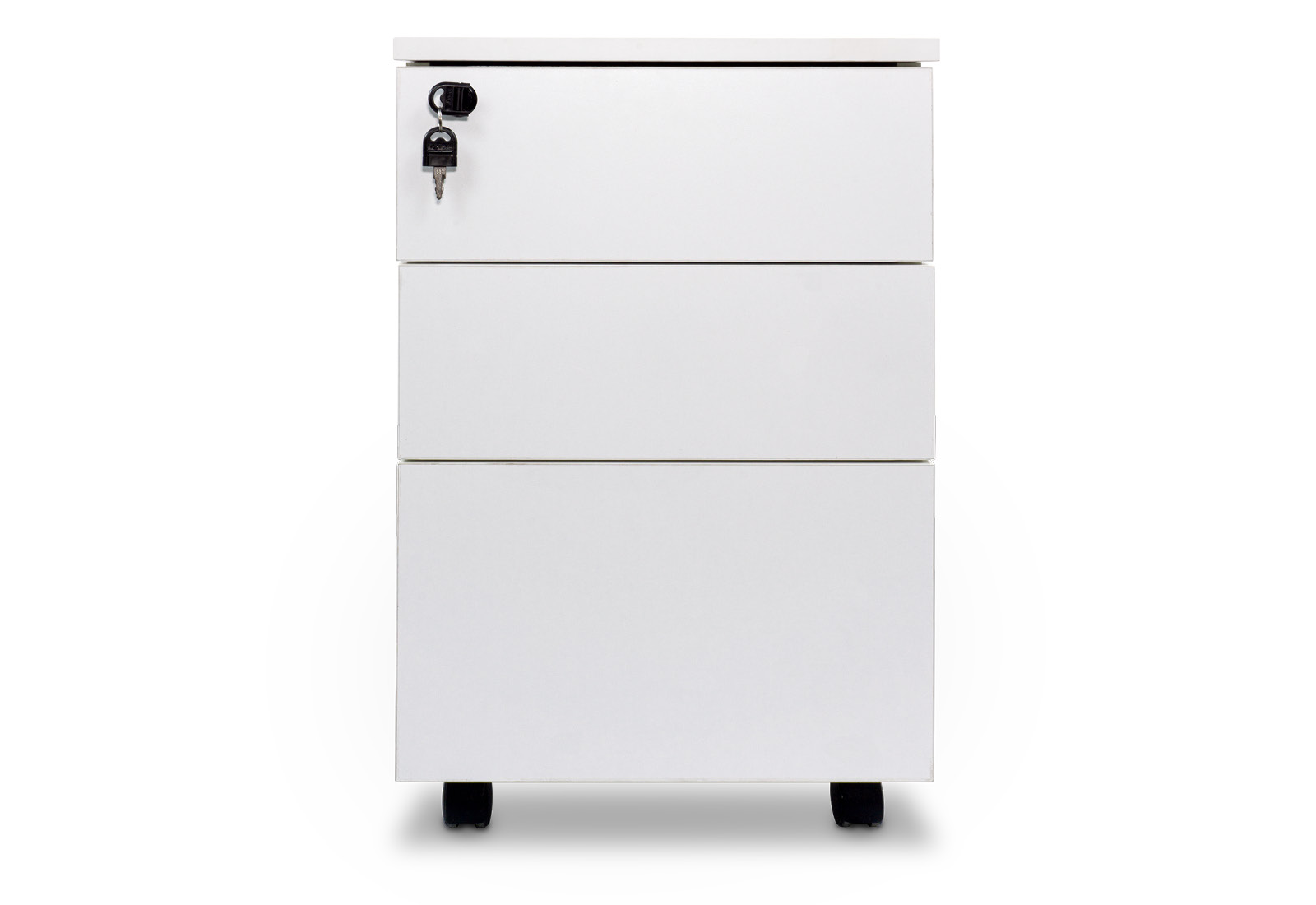 The roller container FRIDA is an ideal addition to optimise your workplace. Measuring 400 mm x 455 mm x 620 mm, it fits perfectly under all MILLA desks and its 3 drawers provide ample storage space for your office supplies. All 3 drawers are lockable, providing extra security for your valuable or confidential items. Included in the delivery are 2 keys. The roller container is finished in an elegant White that matches any office décor. Thanks to the castors, this can be easily moved with its 25 kg weight, which promotes flexibility and mobility in the workplace. The containers are delivered assembled, only the castors need to be screwed on. With our roller container FRIDA, you always have everything you need at hand.