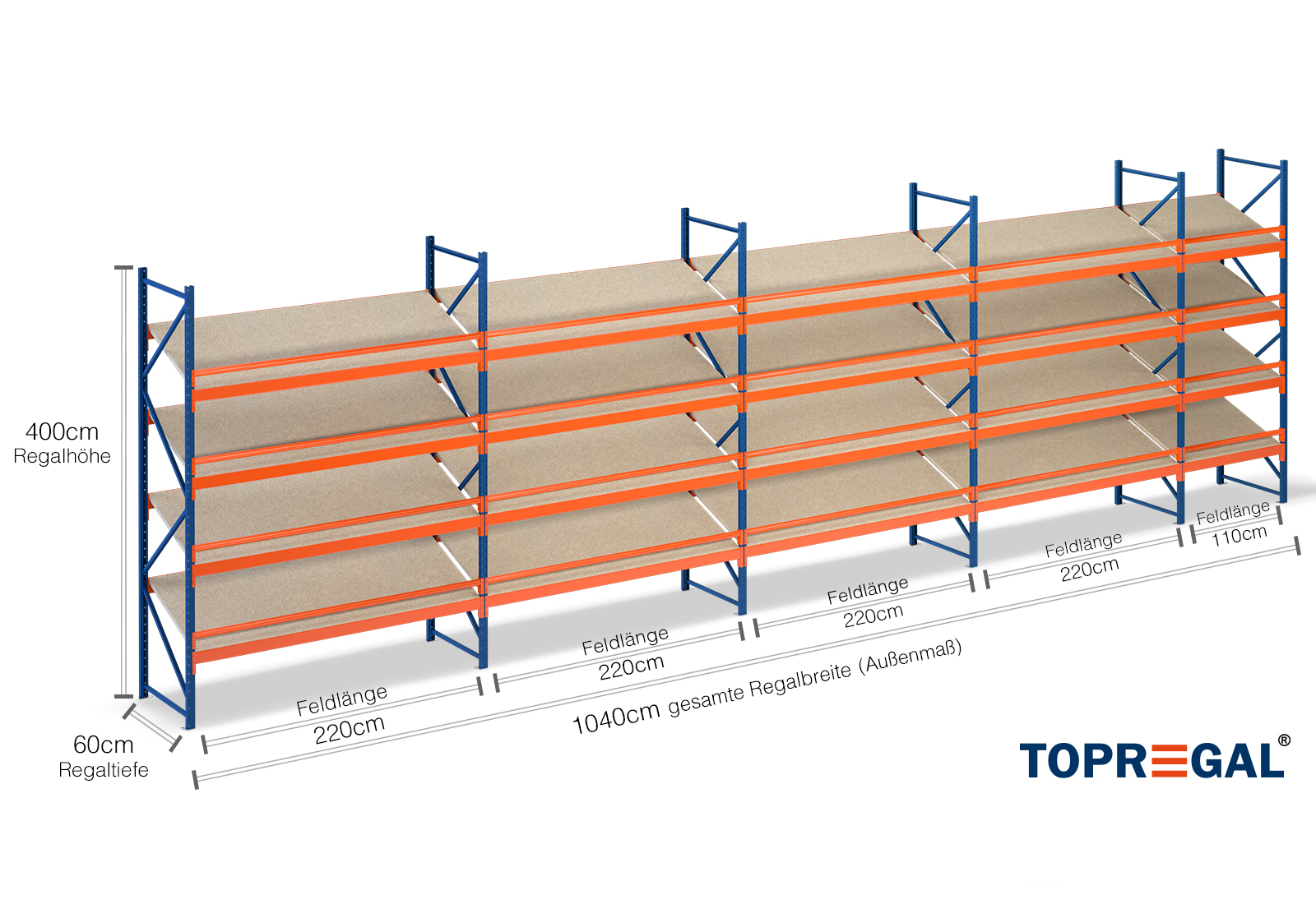 All data refer to evenly distributed loads. When loaded, the shelf load and field load must not be exceeded. In principle, the current guidelines on safety and health at work (german DGUV Rule 208-061) apply during use. TOPREGAL accepts no liability for accidents/damage caused by improper use. Our expert advisory team will be pleased to answer any questions you may have. Dimensions given are approximate and may deviate by a few centimetres. Contact us if you need the exact dimensions for your desired product.