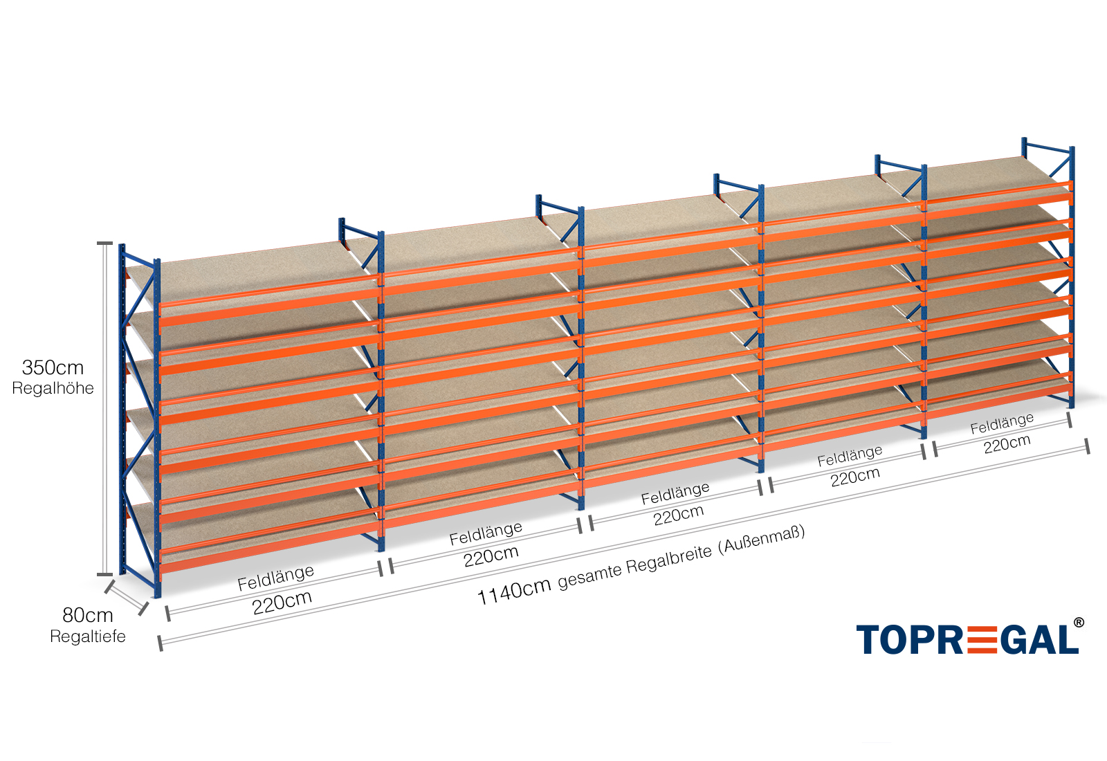 All data refer to evenly distributed loads. When loaded, the shelf load and field load must not be exceeded. In principle, the current guidelines on safety and health at work (german DGUV Rule 208-061) apply during use. TOPREGAL accepts no liability for accidents/damage caused by improper use. Our expert advisory team will be pleased to answer any questions you may have. Dimensions given are approximate and may deviate by a few centimetres. Contact us if you need the exact dimensions for your desired product.