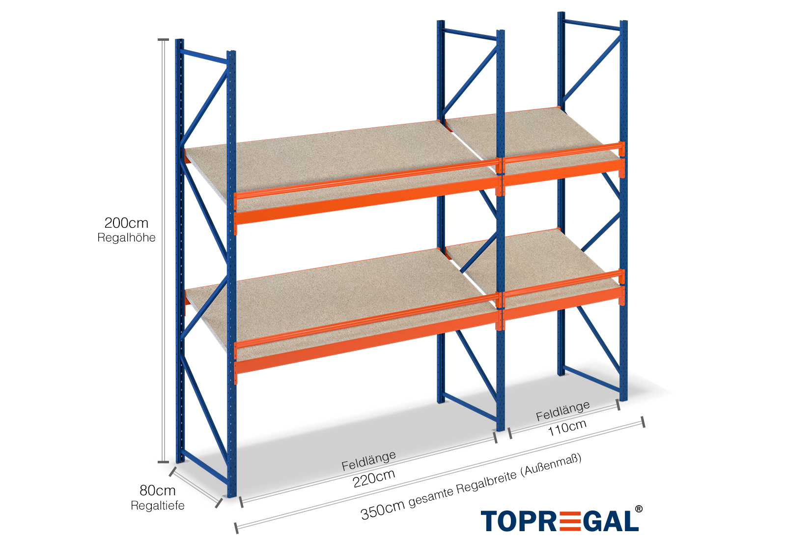 All data refer to evenly distributed loads. When loaded, the shelf load and field load must not be exceeded. In principle, the current guidelines on safety and health at work (german DGUV Rule 208-061) apply during use. TOPREGAL accepts no liability for accidents/damage caused by improper use. Our expert advisory team will be pleased to answer any questions you may have. Dimensions given are approximate and may deviate by a few centimetres. Contact us if you need the exact dimensions for your desired product.