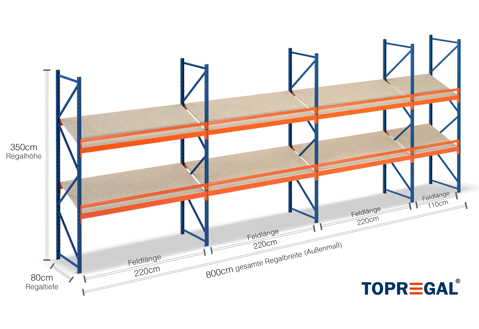 All data refer to evenly distributed loads. When loaded, the shelf load and field load must not be exceeded. In principle, the current guidelines on safety and health at work (german DGUV Rule 208-061) apply during use. TOPREGAL accepts no liability for accidents/damage caused by improper use. Our expert advisory team will be pleased to answer any questions you may have. Dimensions given are approximate and may deviate by a few centimetres. Contact us if you need the exact dimensions for your desired product.
