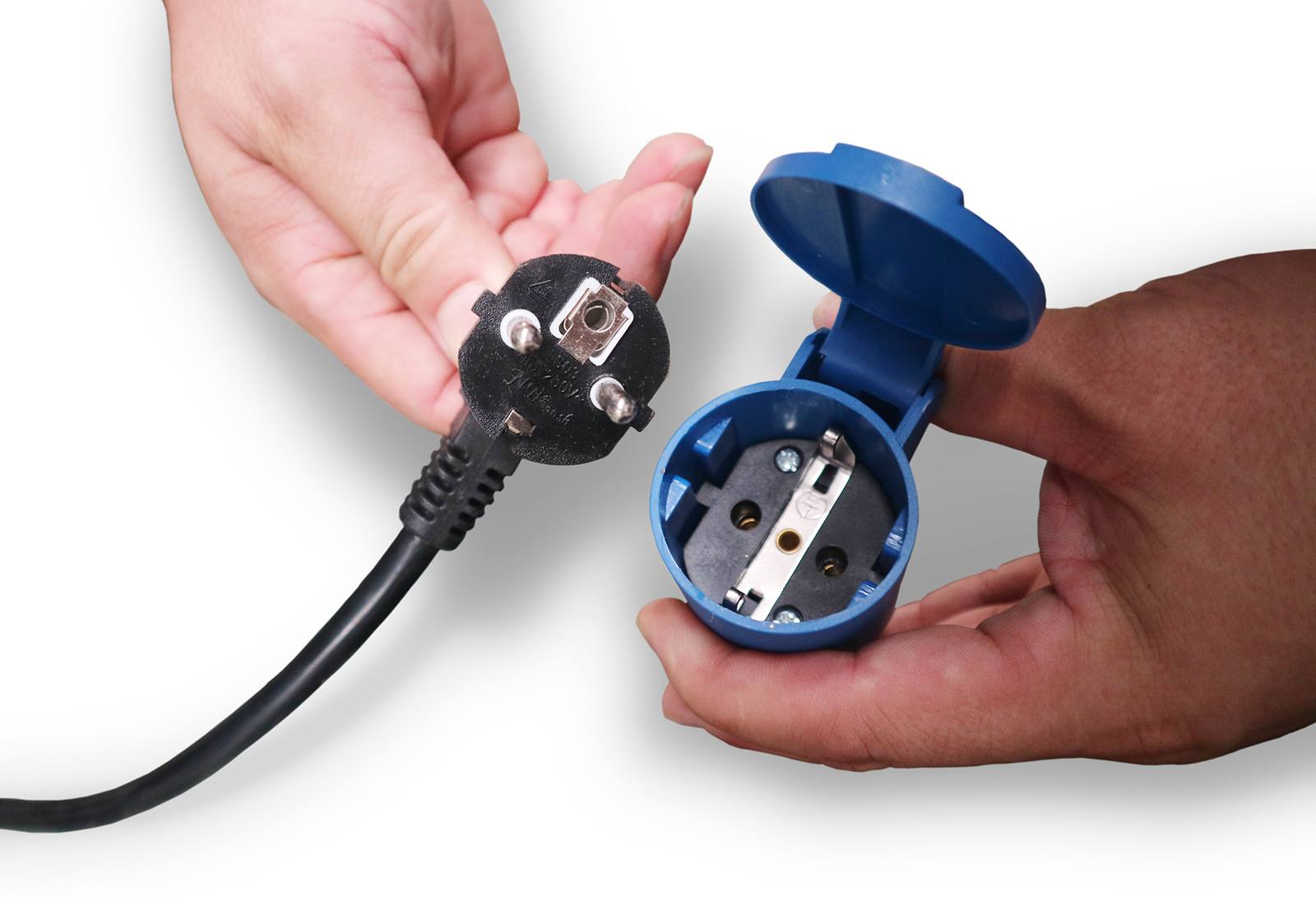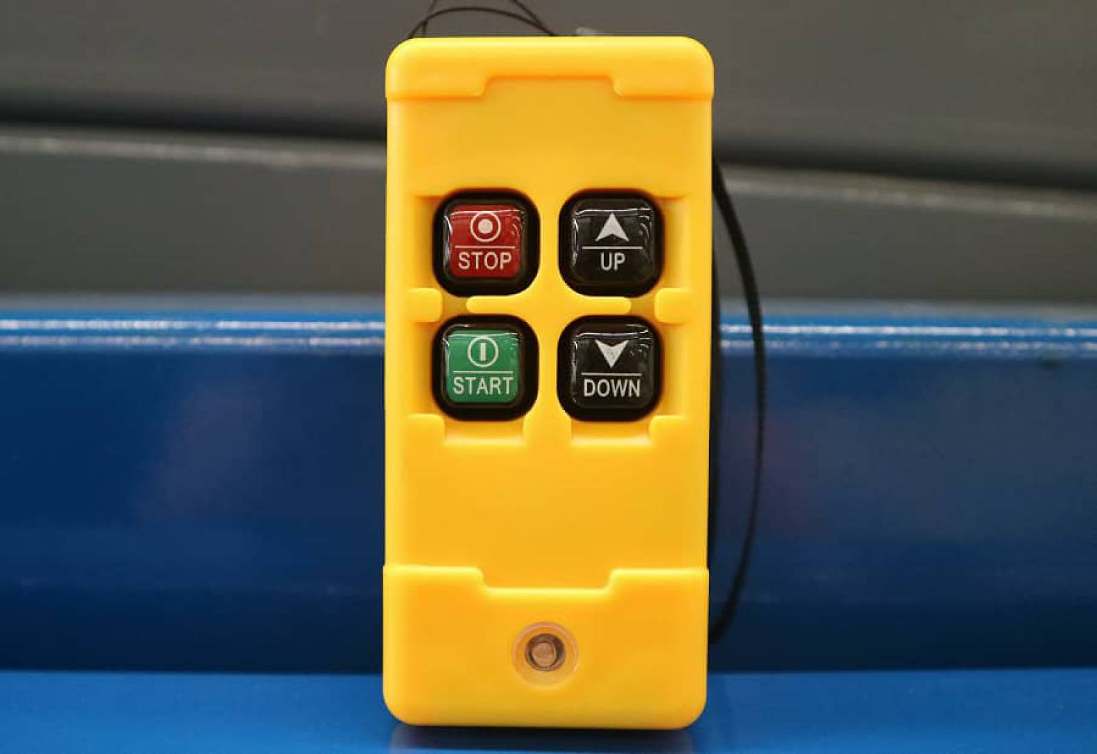 The powerful 220 V / 2.200 W electric motor allows the platform to be raised to a maximum height of 220 V / 2.200 W For this purpose, the working platform is simply connected to a standard 230 V socket using the extension cable. Operation is via the two control units either on the ground or on the working cage. The controls raise and lower the work basket in 84 mm/s.