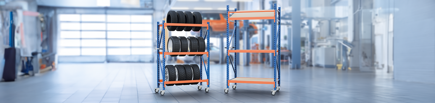 Storage space requirements change from time to time. The mobile racking systems are therefore freely configurable and adaptable. With a hard-wearing plywood layer, a low storage rack can be transformed into a work or packing area. If the beams are offset and round beams are added, a practical kanban racking system such as the SR1500 is created. It is particularly suitable for order picking activities, as stored items can be seen at a glance and removed quickly. With depths of between 40, 50 or 60 cm, the RR2000 tire rack is a suitable storage option for car tires, rims and complete wheels between 13 and 21 inches. Once the castors have been removed, the mobile racks from TOPREGAL can be transformed into fixed storage racks. "We offer a selection of pre-assembled variants as complete racking units," explains Effner. "However, individual configurations are also possible to meet every requirement." In addition to the various editions and sizes, the storage racks can be supplemented with additional accessories.