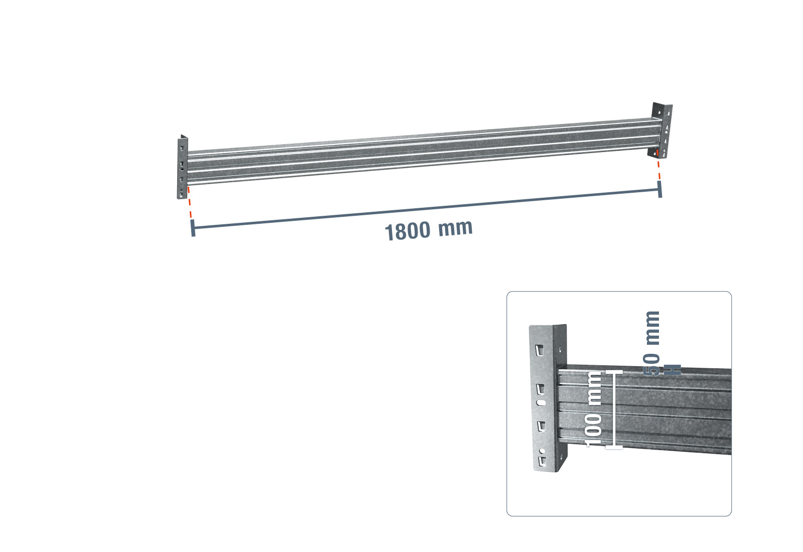- 1 x 180 cm galvanised single beam for pallet rack PR9000F / compartment load capacity 2.000 kg