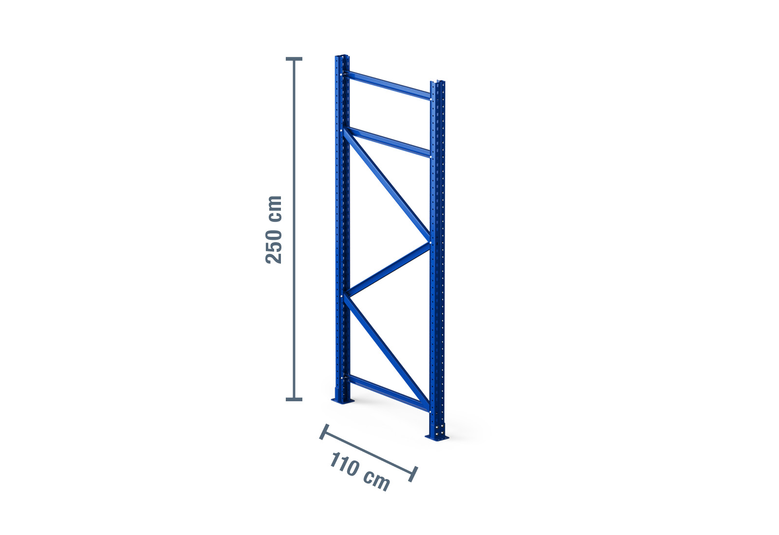 The signal colour of blue provides a striking visual touch and ensures safety in your warehouse. This upright for the pallet rack is secured to the floor with 4 bolt anchors (M12 x 100 mm).