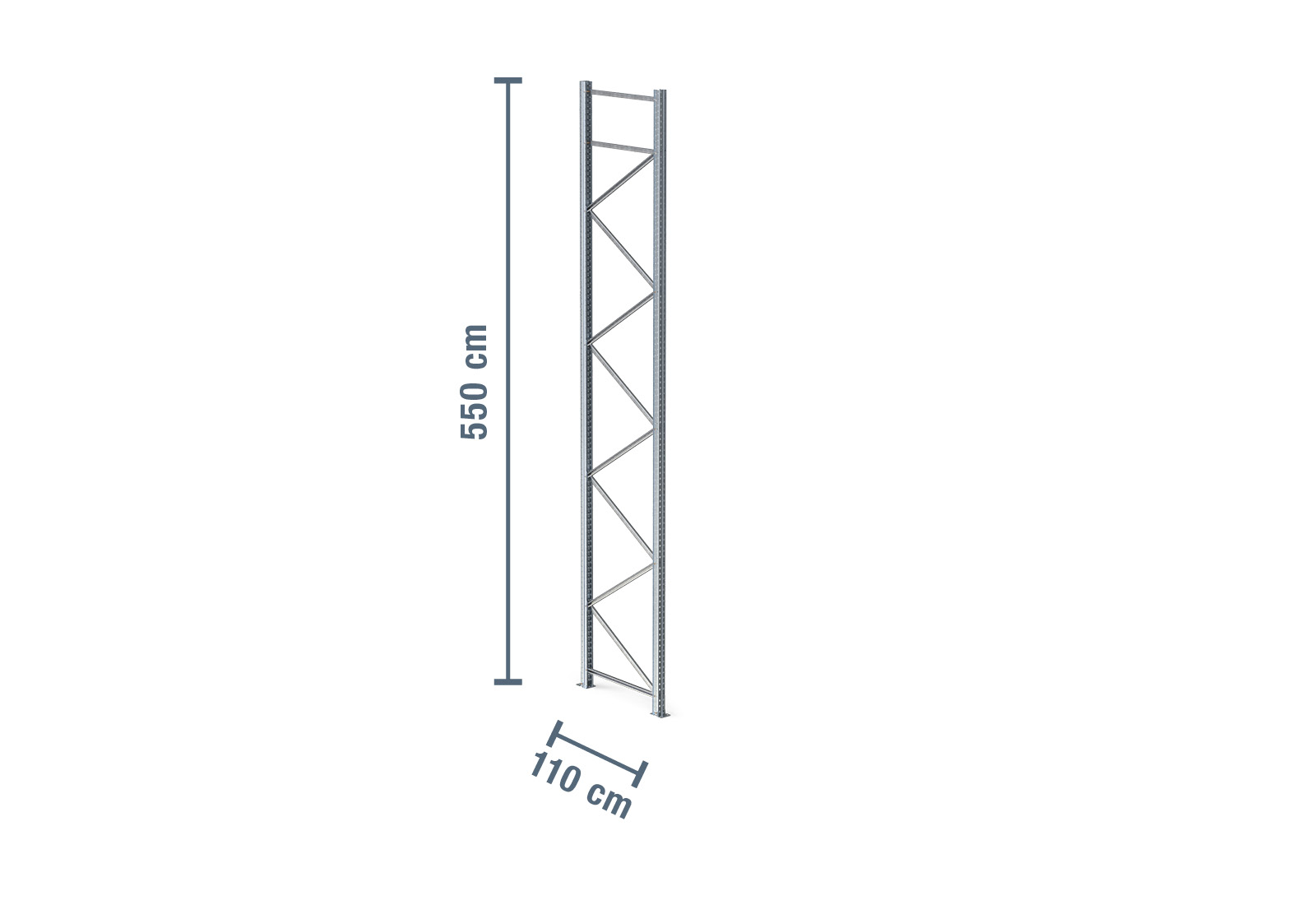 - 1 x 5,5 m galvanised upright for pallet rack PR9000F / 110 cm deep / unit load capacity 9.000 kg