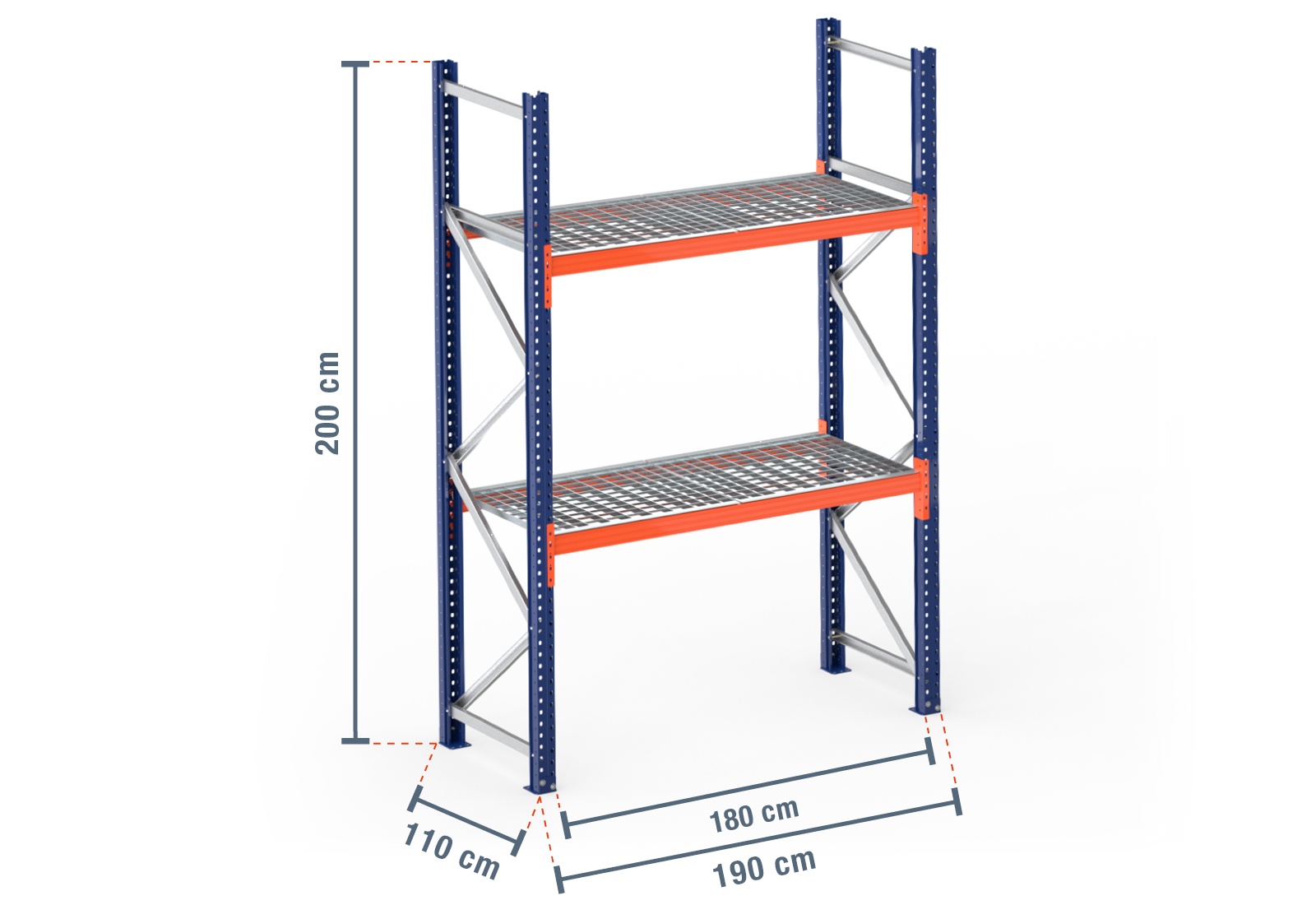 1,9 m pallet rack PR4500 / 110 cm deep / 2 m high / 2 levels / shelf Galvanised mesh